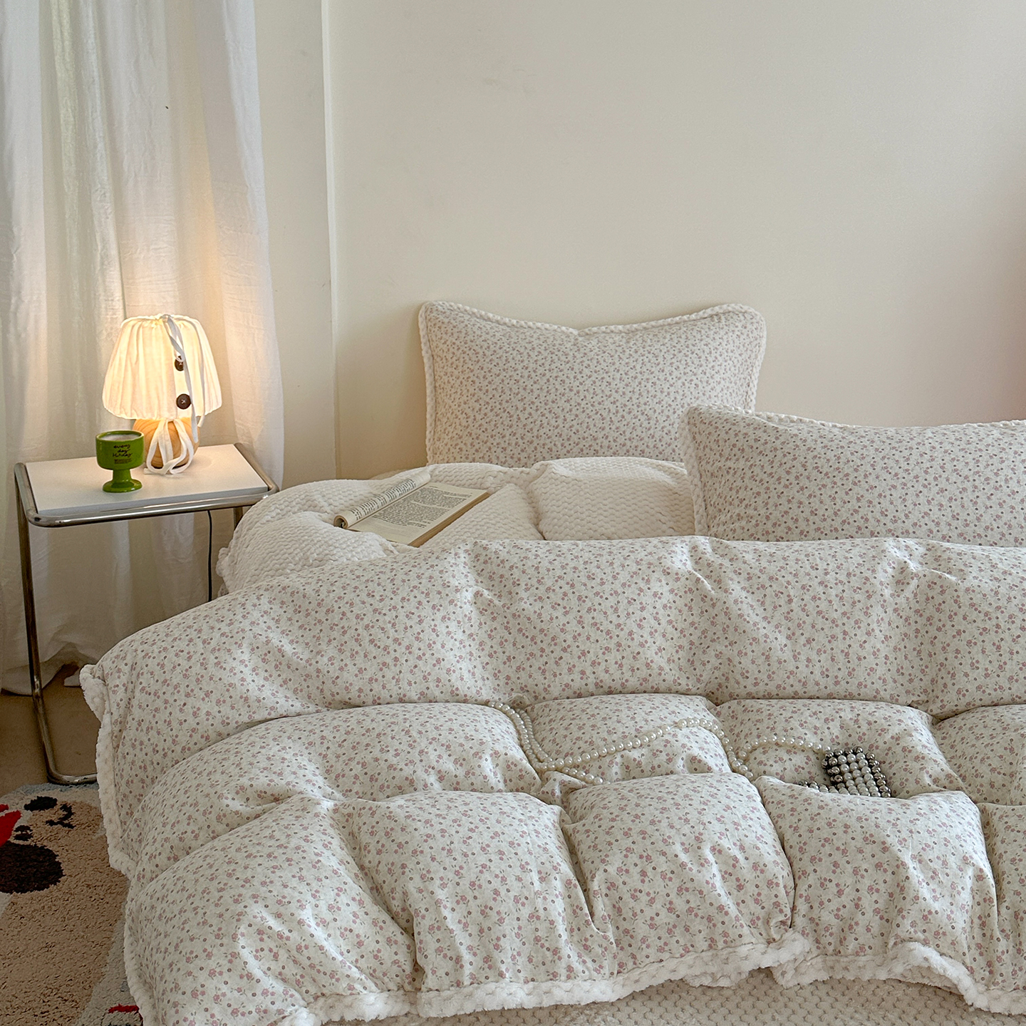 (总)柚子YOUTH 2025新款全棉双层纱华夫格提花暖绒四件套,馥郁花香,咖豹纹,兰格蜡笔画,玫瑰兔兔,拼图爱丽丝,ins咖格