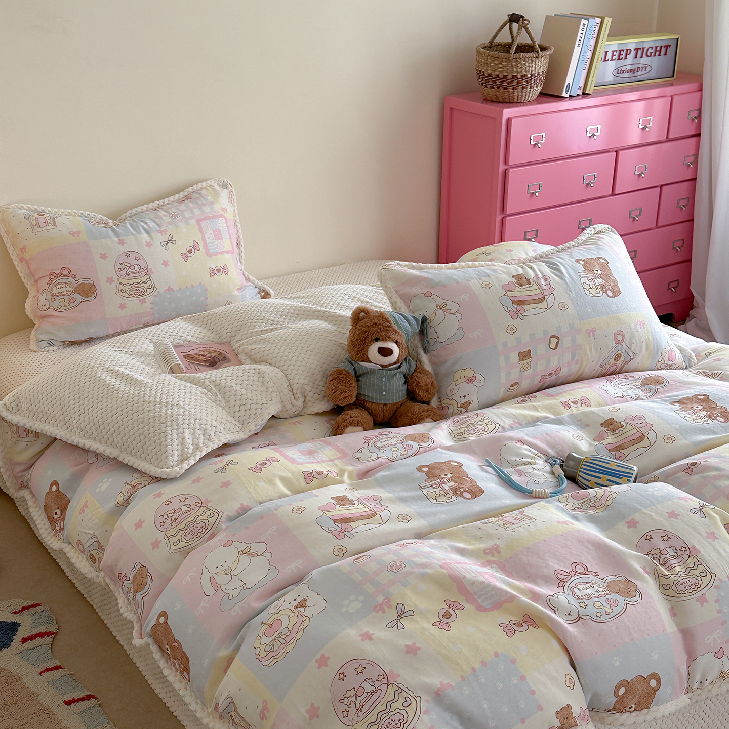 (总)柚子YOUTH 2025新款全棉双层纱贴布绣四件套,棒球熊猫,贝雷帽,冰淇淋小熊,格子玩偶,碎花小兔,小黑猫