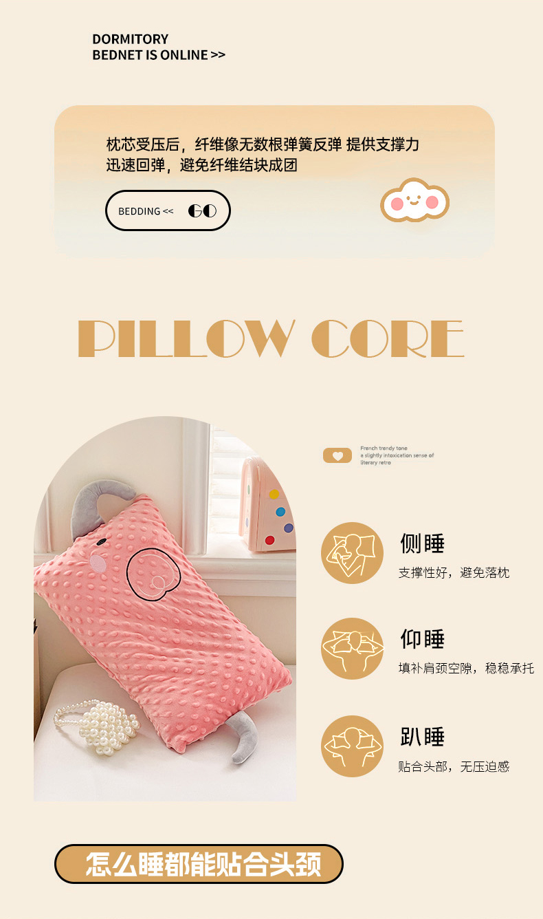 商品名称:亦帆枕芯 2025新款小象豆豆绒儿童枕头豆豆绒宝宝安抚枕芯加枕套 豆沙色-小象豆豆绒