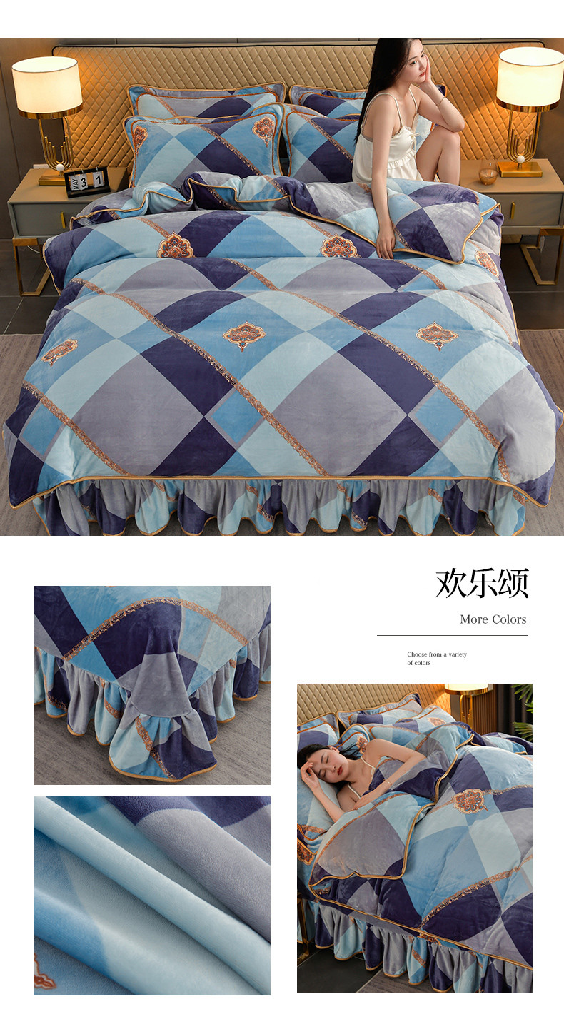 商品名称:韩秀家纺 2025新8.5-9.5斤牛奶绒床裙四件套法兰绒加厚抗静电超柔230克加厚 欢乐颂
