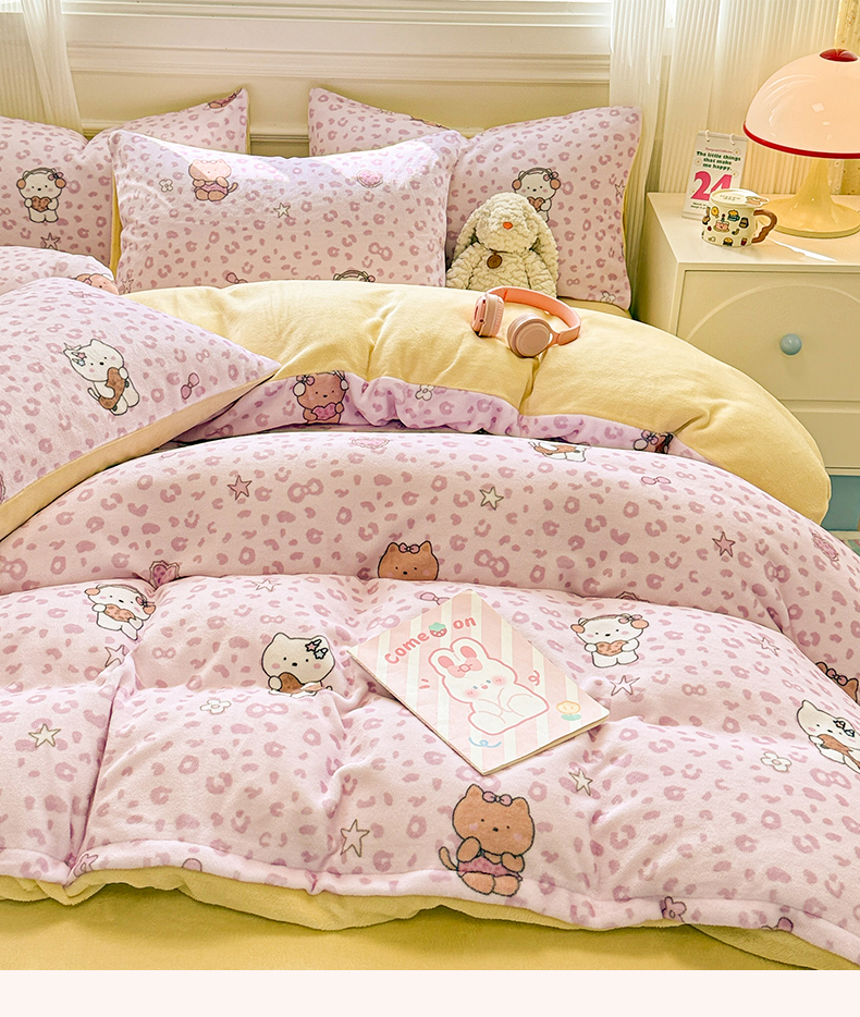 (总)呗旺鹿 2026新款全棉纯棉40支13070卡通印花四件套-场景二,萌星,鼻涕狗,果子象,机灵猫,可爱星人,幸福小熊