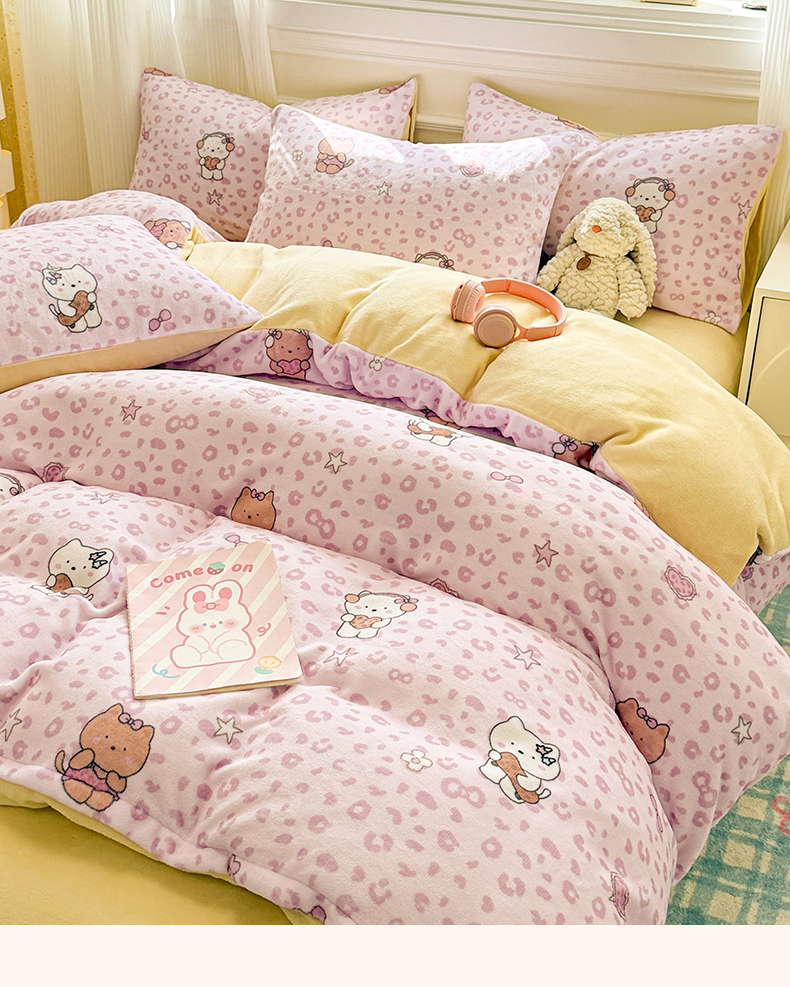 (总)呗旺鹿 2025新款A版全棉B版牛奶绒四件套,冰岛小马,萌星,糖果小马,小狗笔记,费尔岛小熊