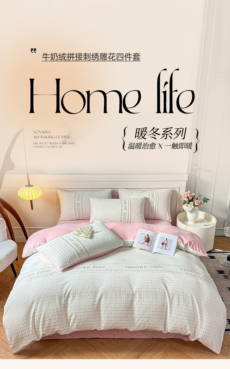 当前位置: 91家纺网 > 商品网购 > 床品套件 > 四件套 > 牛奶绒四件套 > 灰鲸 2025新款牛奶绒刺绣拼接款四件套-威廉 威廉-奶昔白+可可粉