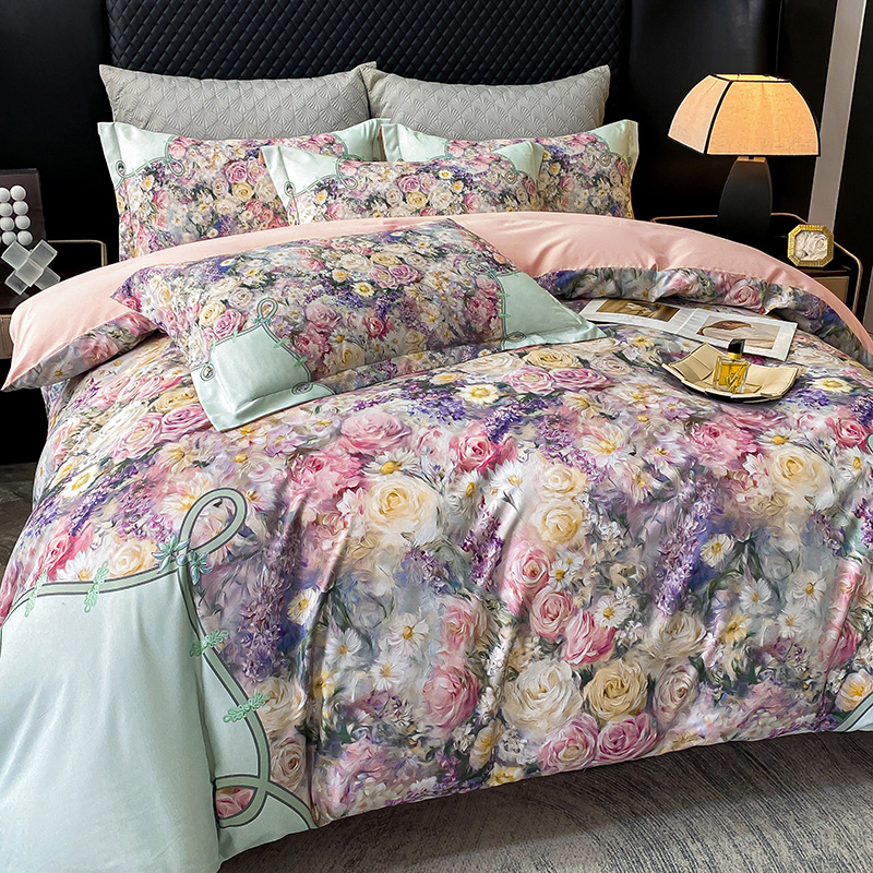 (总)大麦乐田 2025新款珍珠棉大版印花四件套,境澜-玉,若芸-紫,境澜-灰,花涧-粉,境涧-紫,芳华-紫,若芸-粉,芳华-黄,花涧-桔,梦谷-粉,梦谷-绿