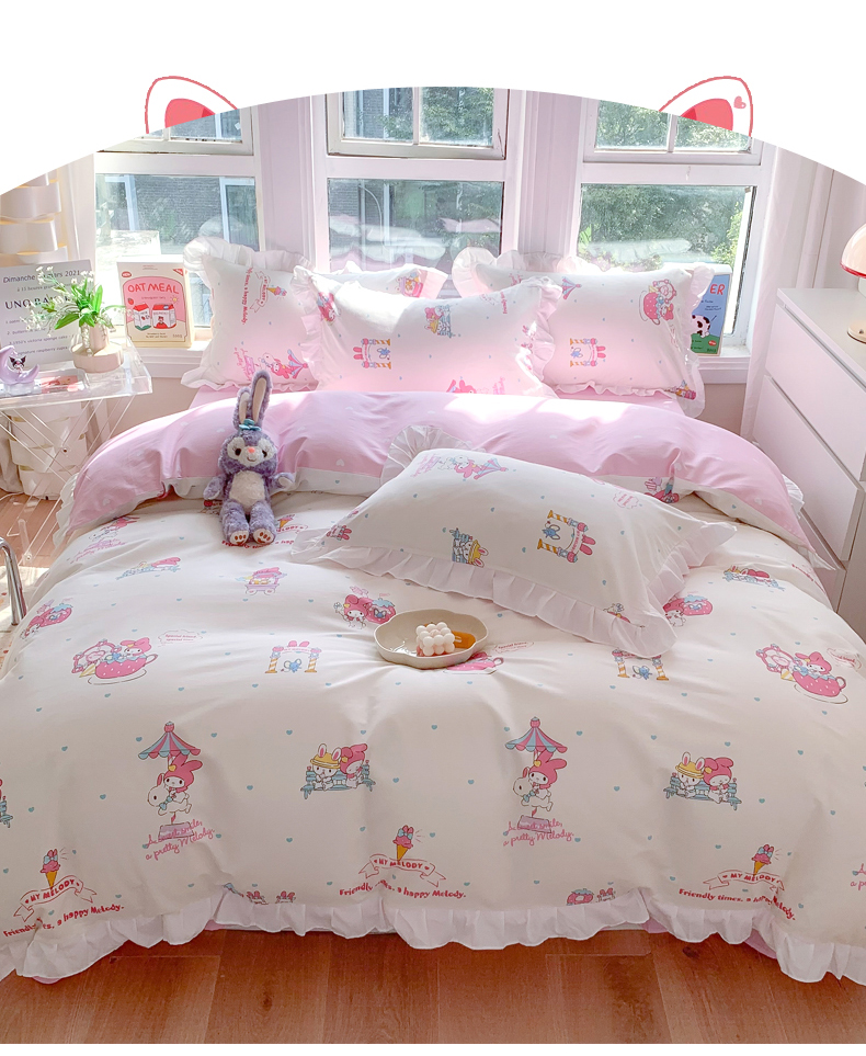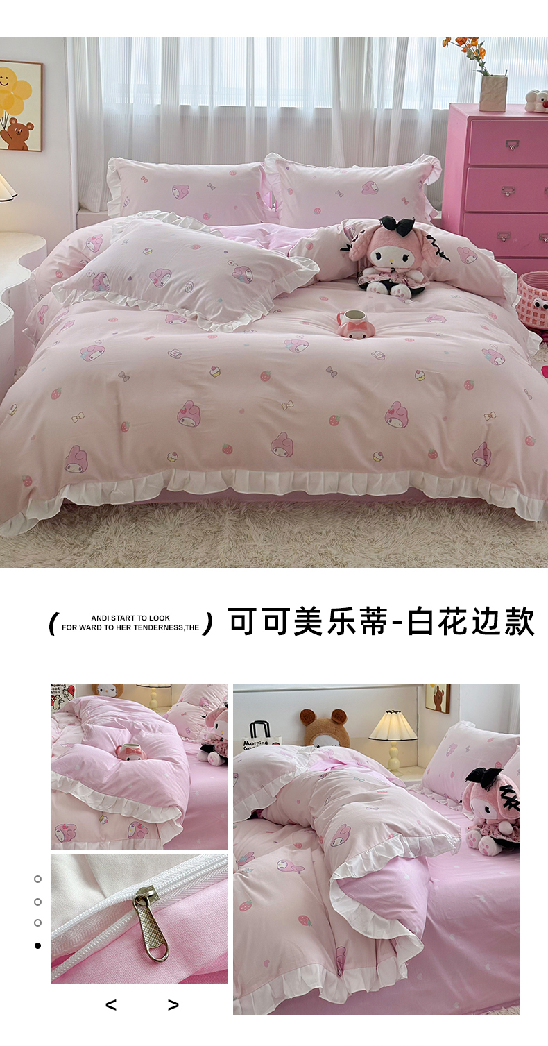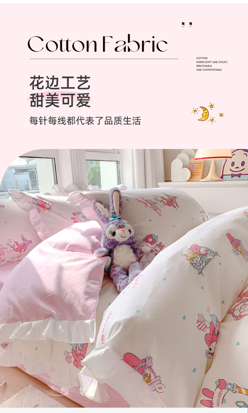当前位置: 91家纺网 > 商品网购 > 床品套件 > 四件套 > 全棉普通四件套 > 玉元坊 2025新款全棉纯棉美乐蒂白花边款式四件套 开心美乐蒂【花边款】