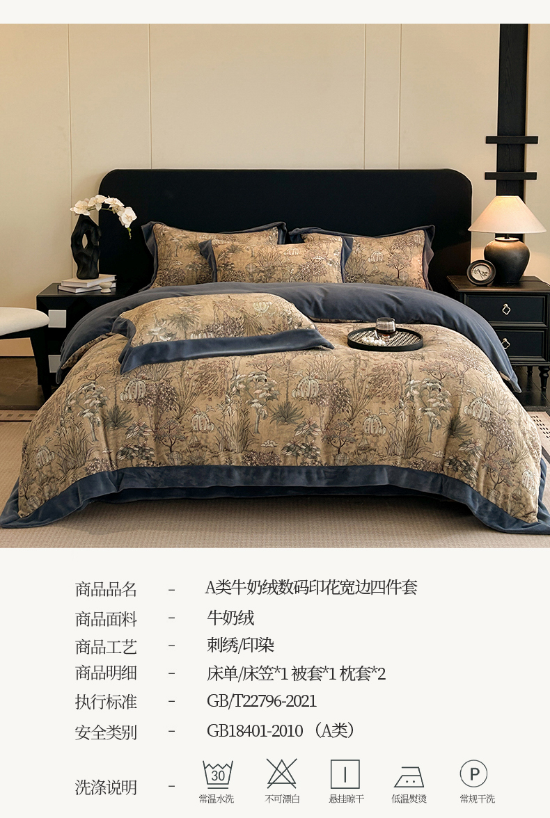 当前位置: 91家纺网 > 商品网购 > 床品套件 > 四件套 > 牛奶绒四件套 > 眷恋家纺 2025新款加厚牛奶绒法式数码印花宽边四件套 菲尔德