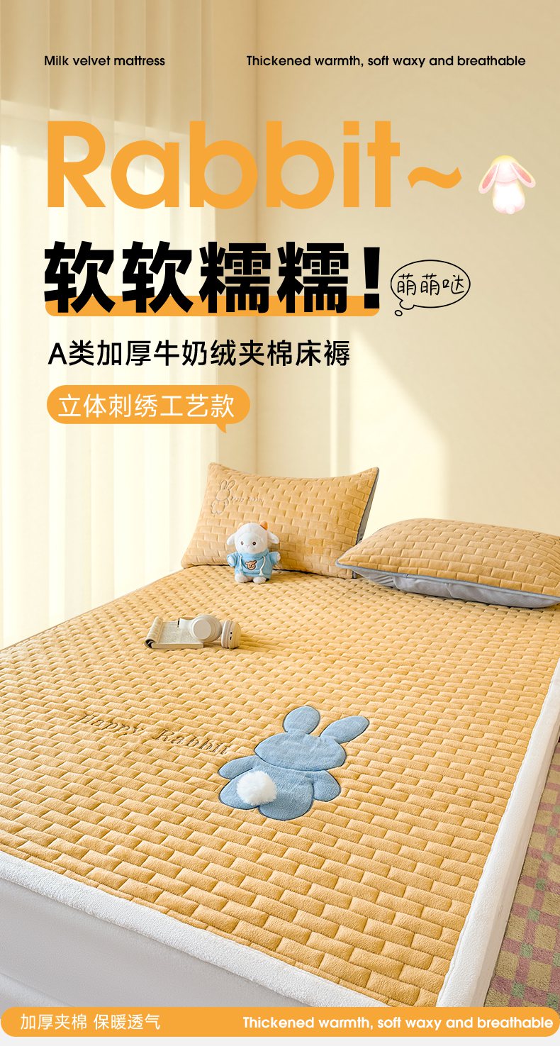 当前位置: 91家纺网 > 商品网购 > 床垫/床褥 > 普通床垫 > 恋绒家纺 2025新款贴布绣牛奶绒床褥床垫 Q萌小兔-湛蓝