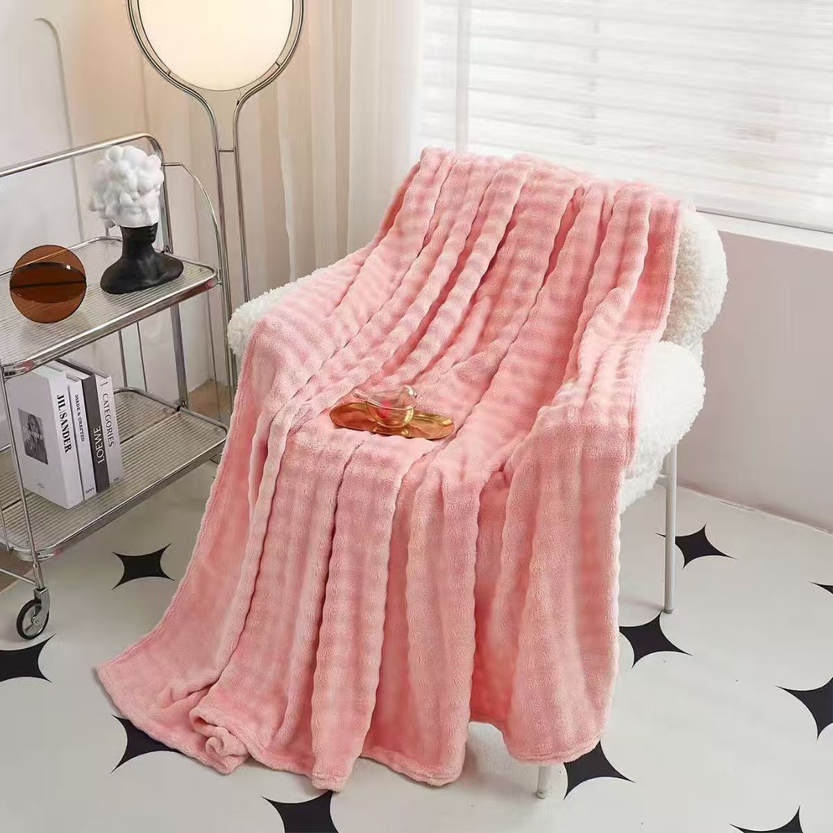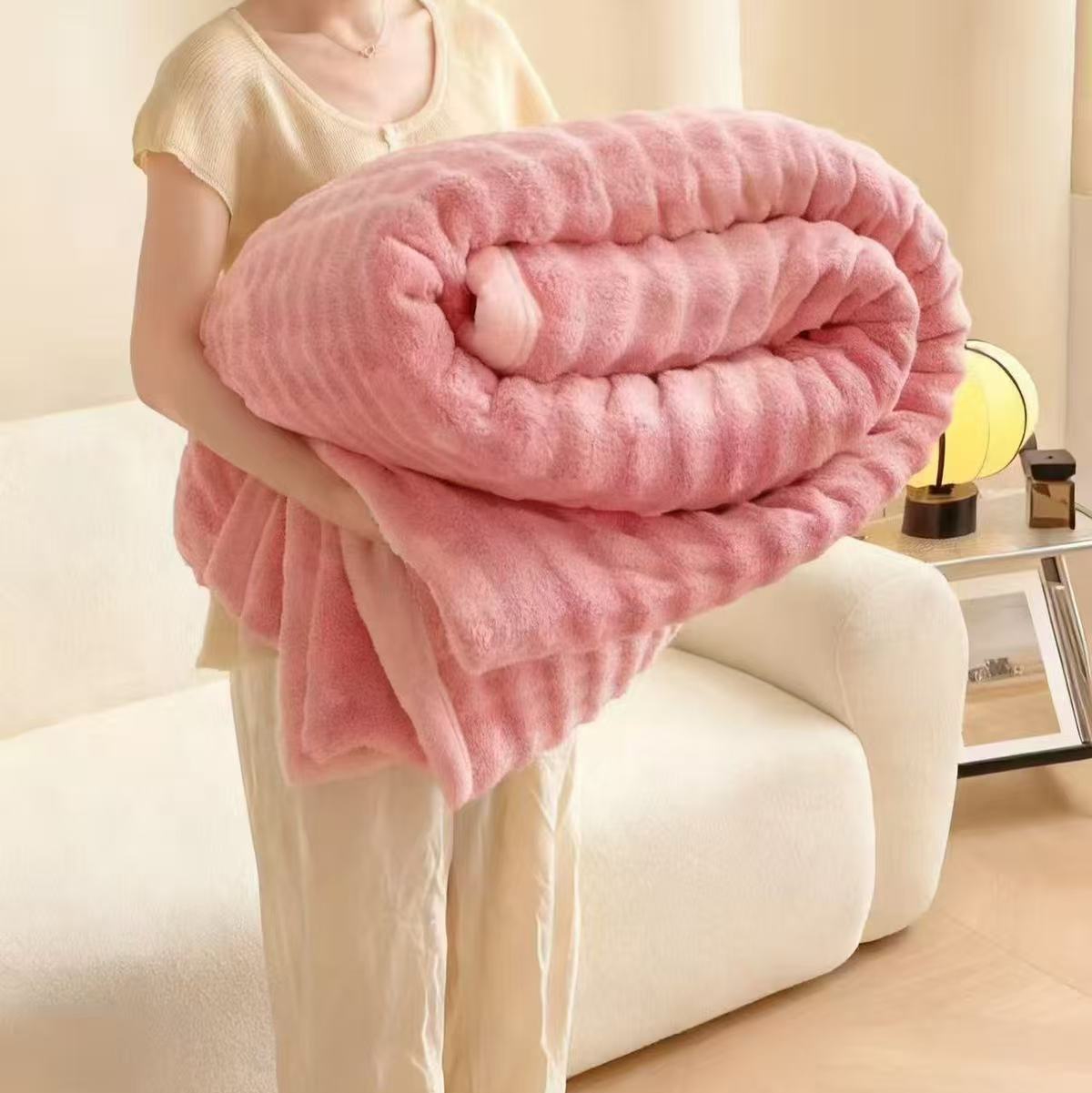 (总)华誉 2025新款仿兔毛泡泡毛毯牛奶绒毛毯午睡毯,绿色,粉色
