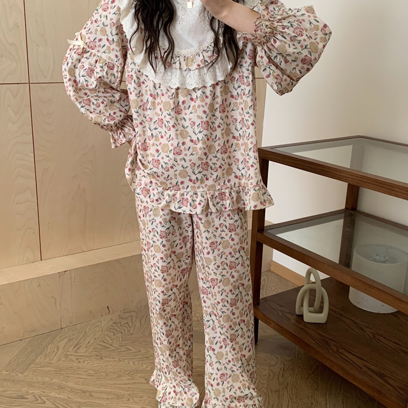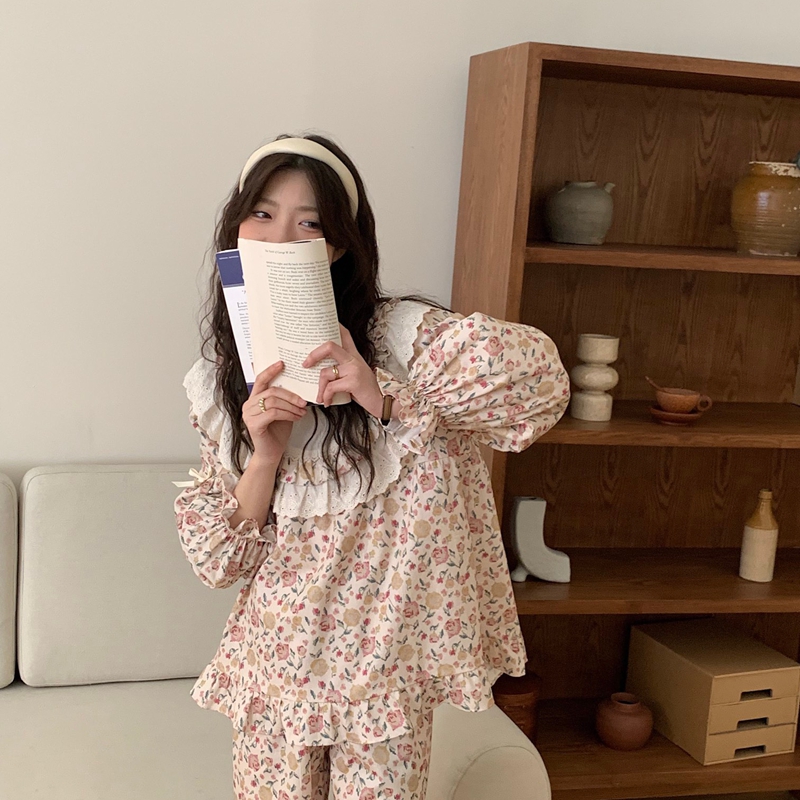 当前位置: 91家纺网 > 商品网购 > 居家日用 > 睡衣/家居服套装 > (总)妍景家居生活馆 2025新款82890-韩系方领蕾丝边碎花套装