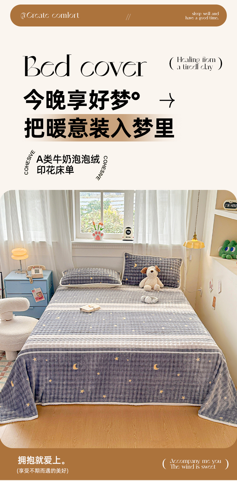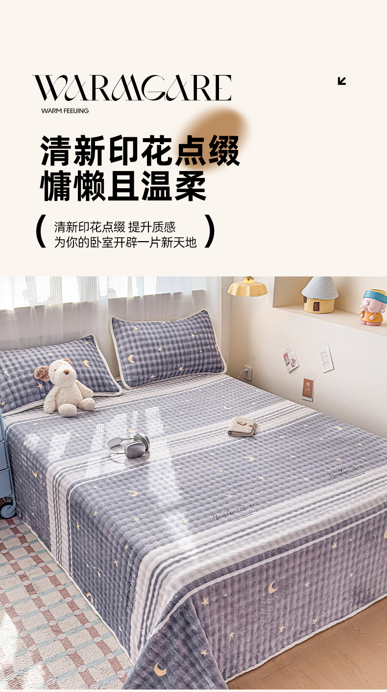 • 91家纺网 家纺一手货源 找家纺 丝芙妮家居(原乐视家纺) 2025新款A类牛奶泡泡绒印花单品床单 夜幕星辰