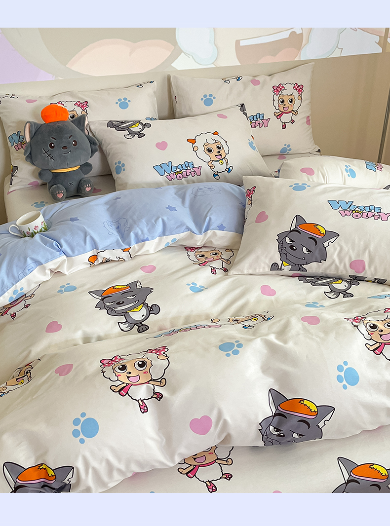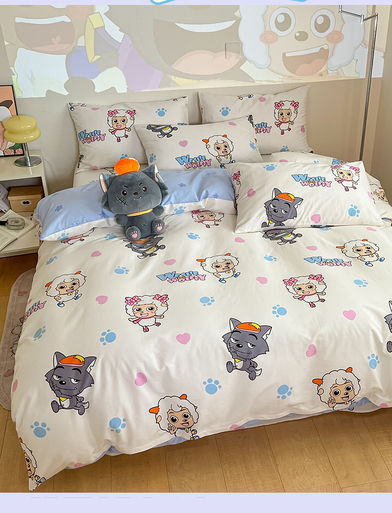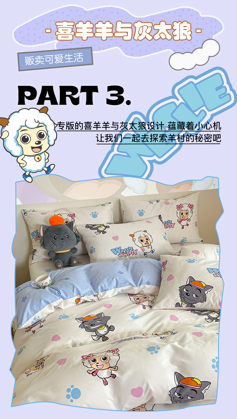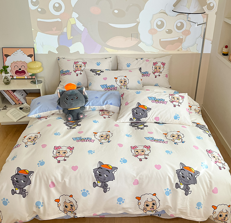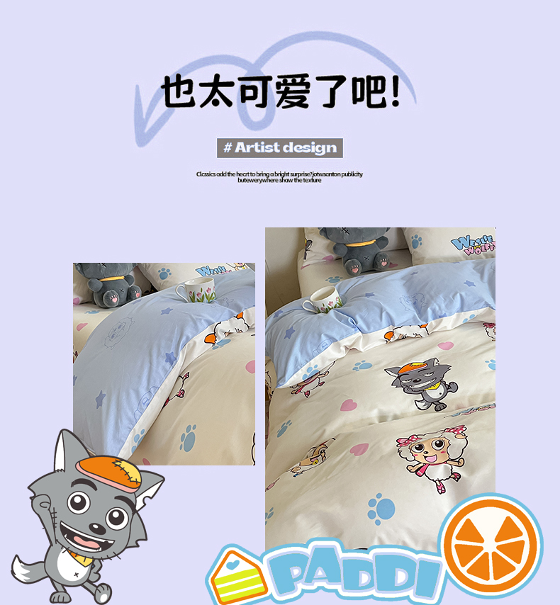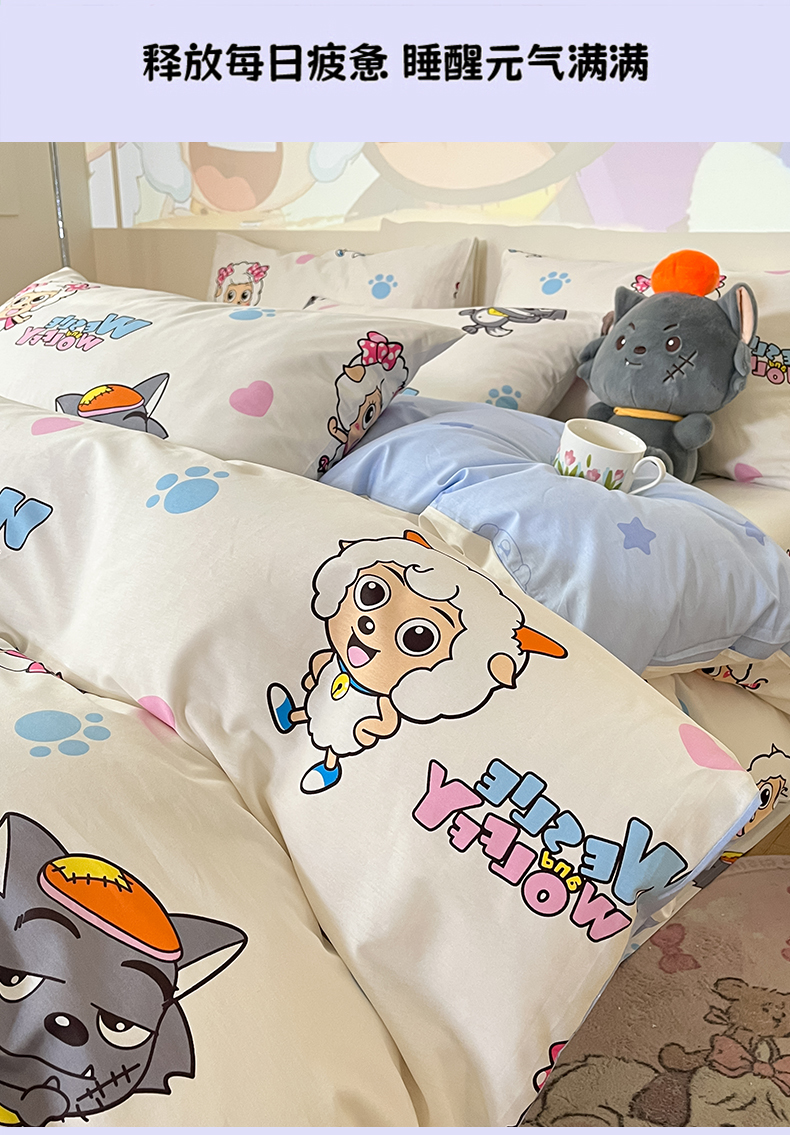 商品名称:金鑫汇家纺 2025新款喜羊羊与灰太狼全棉单品被套 狼羊共舞