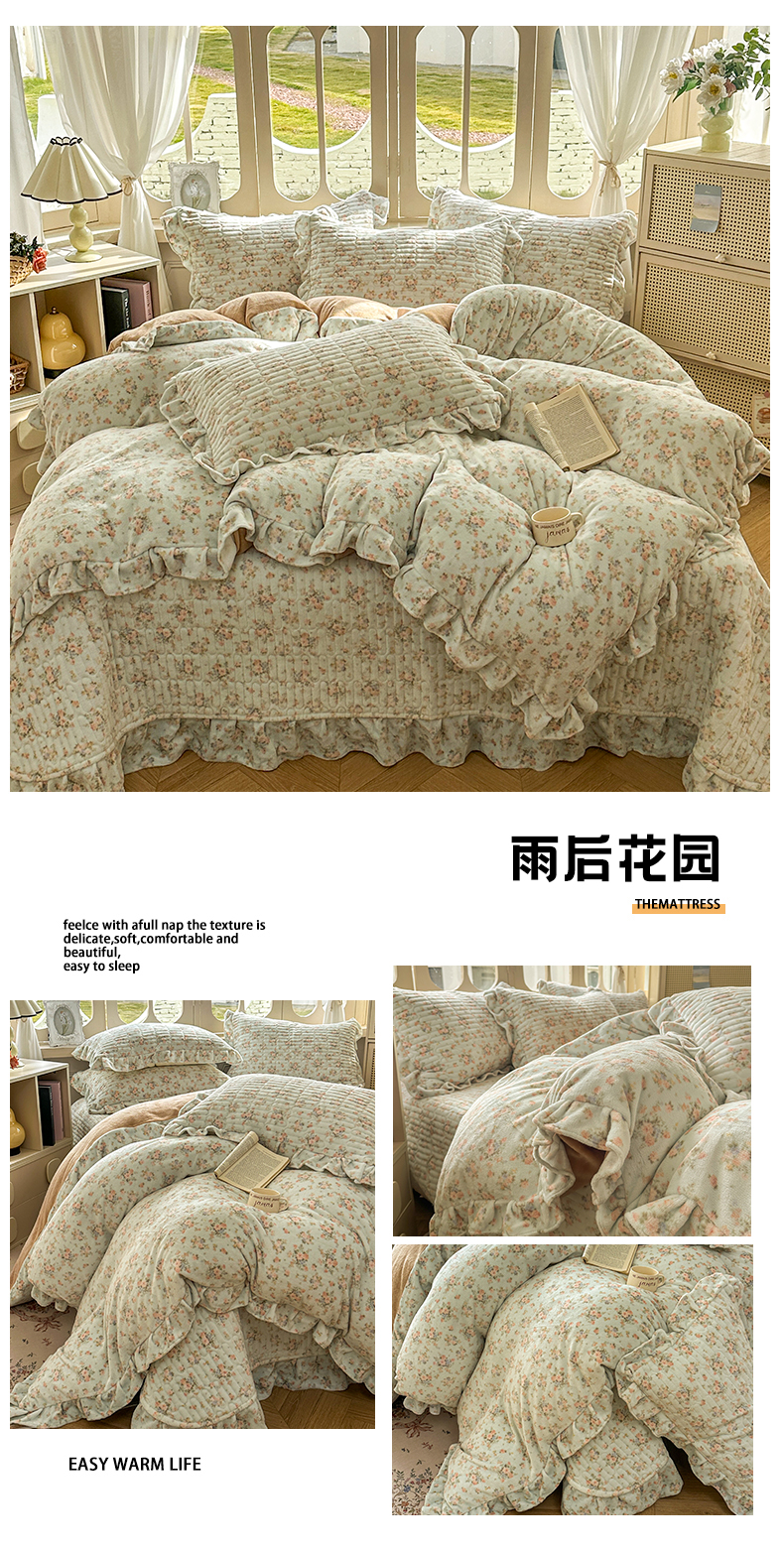 商品名称:美梦家纺 2025新款牛奶绒花边夹棉床盖四件套 蝶舞