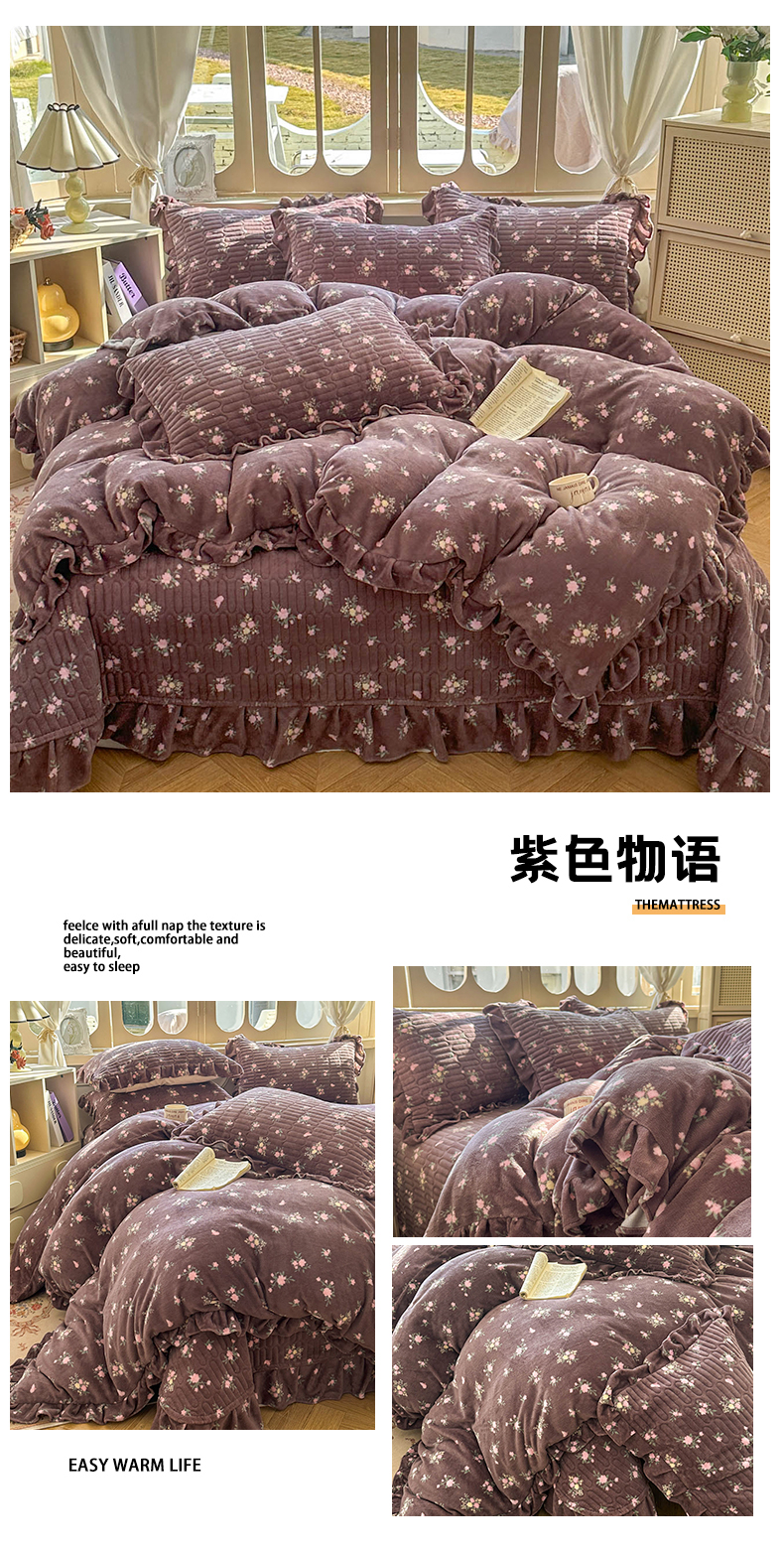 (总)美梦家纺 2025新款牛奶绒花边夹棉床盖四件套,爱心-灰,蝴蝶结-紫,蝶舞,蕾丝花-蓝,豆蔻,咖波点,蝴蝶结-灰,灵动草莓-米,秋叶-咖,甜美女孩,乌梅紫酱,星辰蝶语-紫,雨后花园,紫色物语,冰淇淋