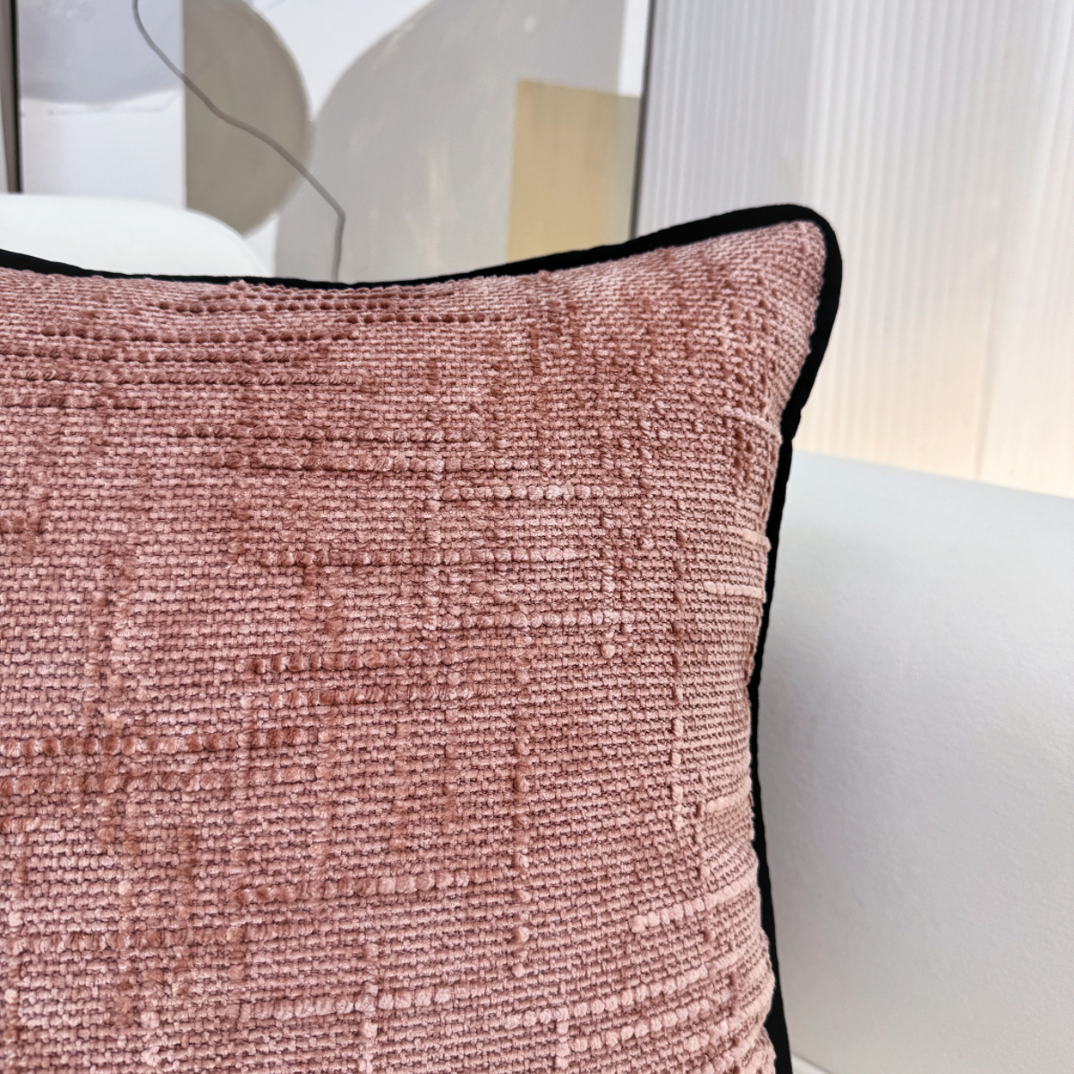 爱家居 2025新款纯色加厚雪尼尔纹理抱枕轻奢家居靠垫沙发床头靠包枕可拆洗 轻奢雪尼尔—粉