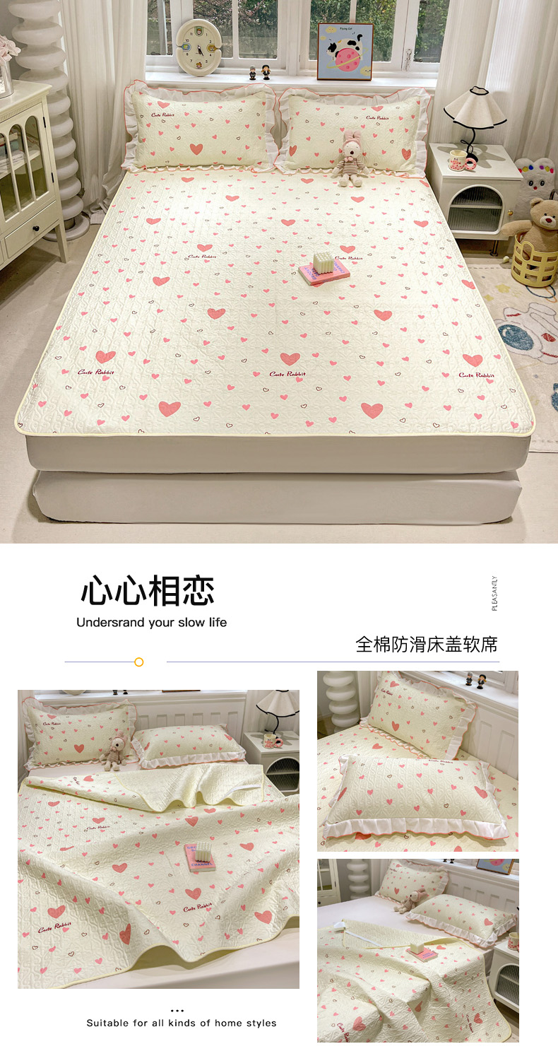 • 91家纺网 家纺一手货源 找家纺 羽爱家纺 2025新款舒适可定制全棉防滑床盖软席心心相恋