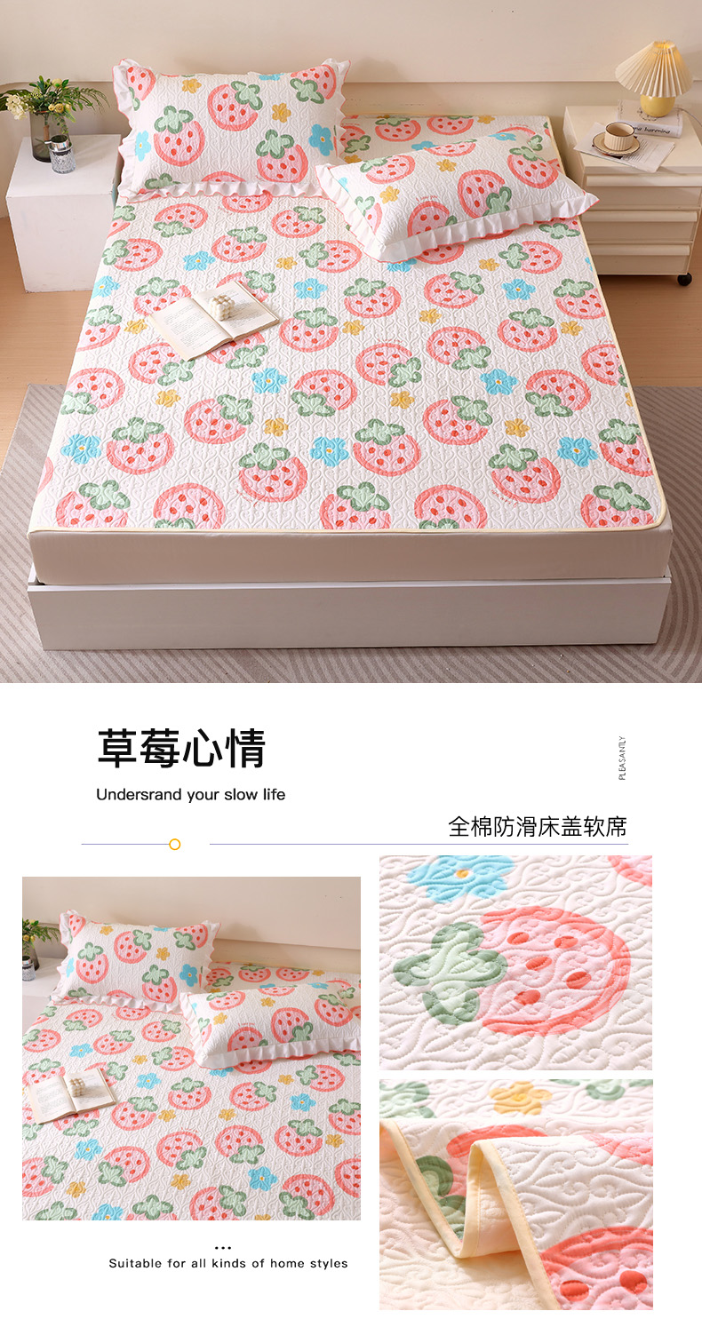 羽爱家纺 2025新款舒适可定制全棉防滑床盖软席草莓心情