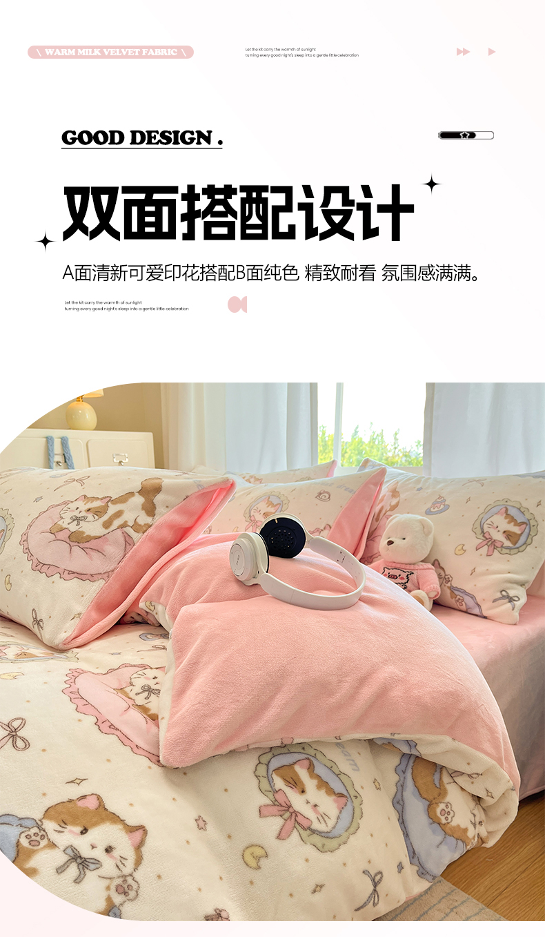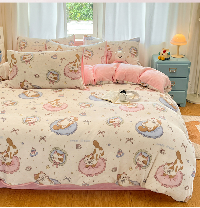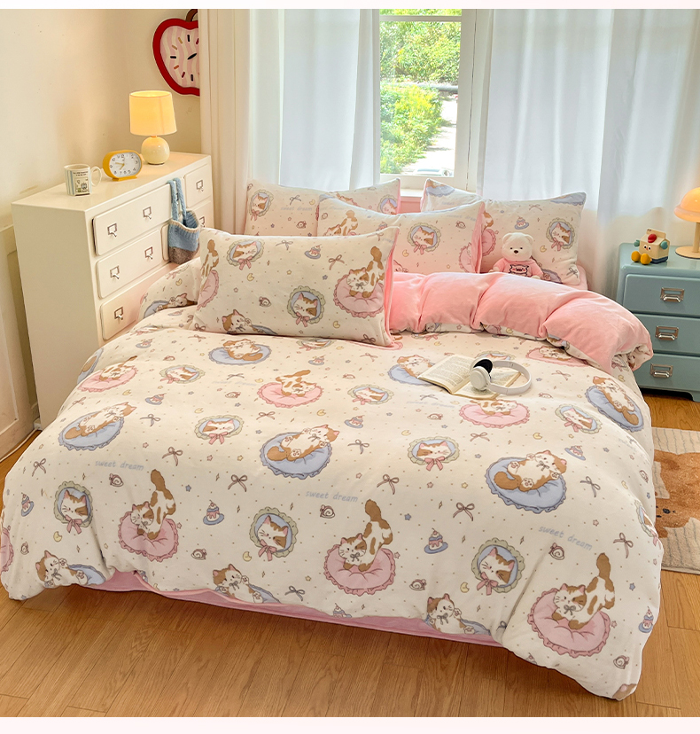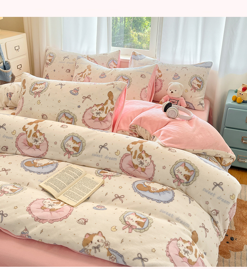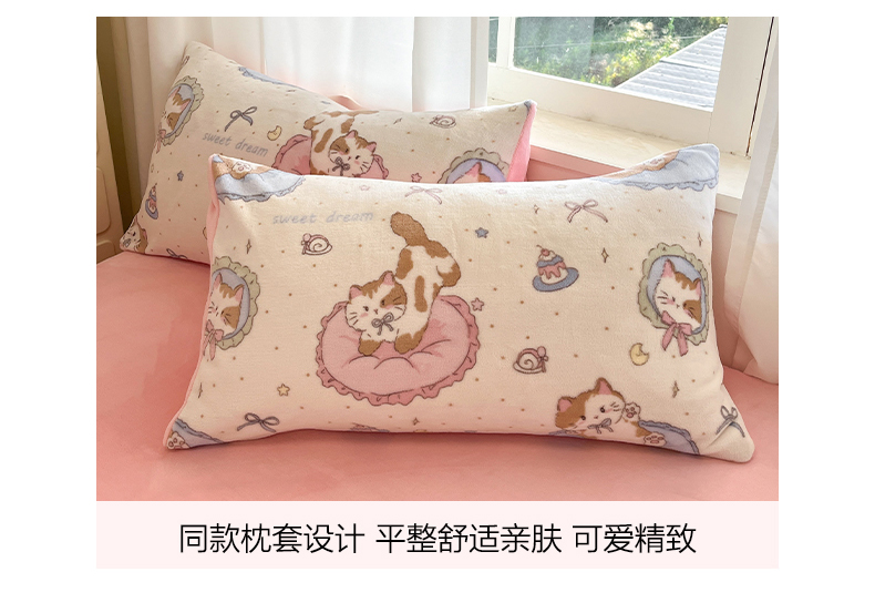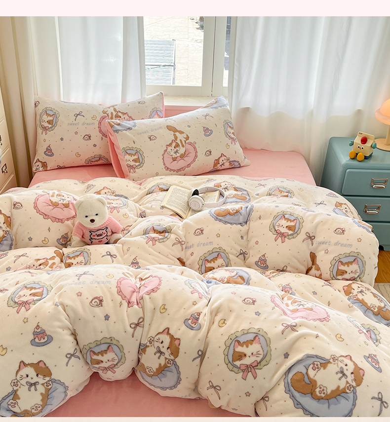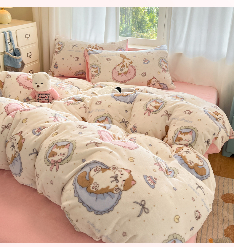 吉象家纺 2025新款高克重牛奶绒印花被套 萝莉猫咪