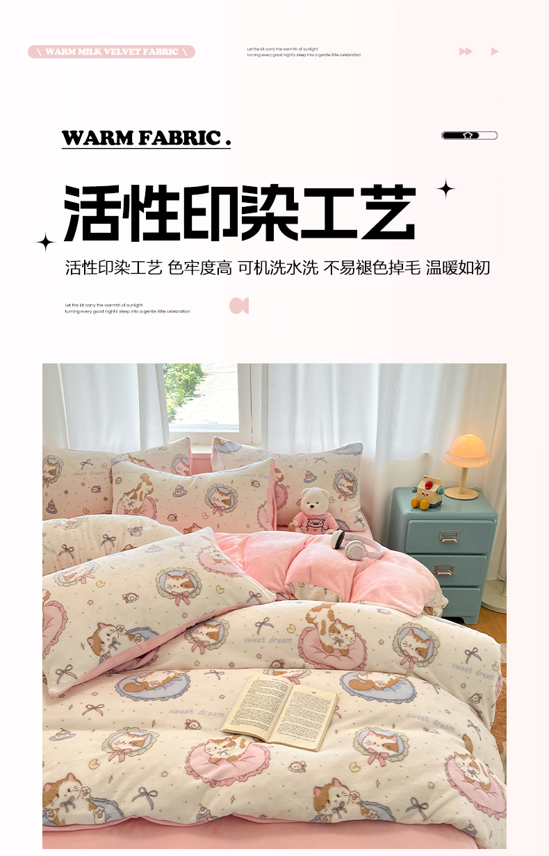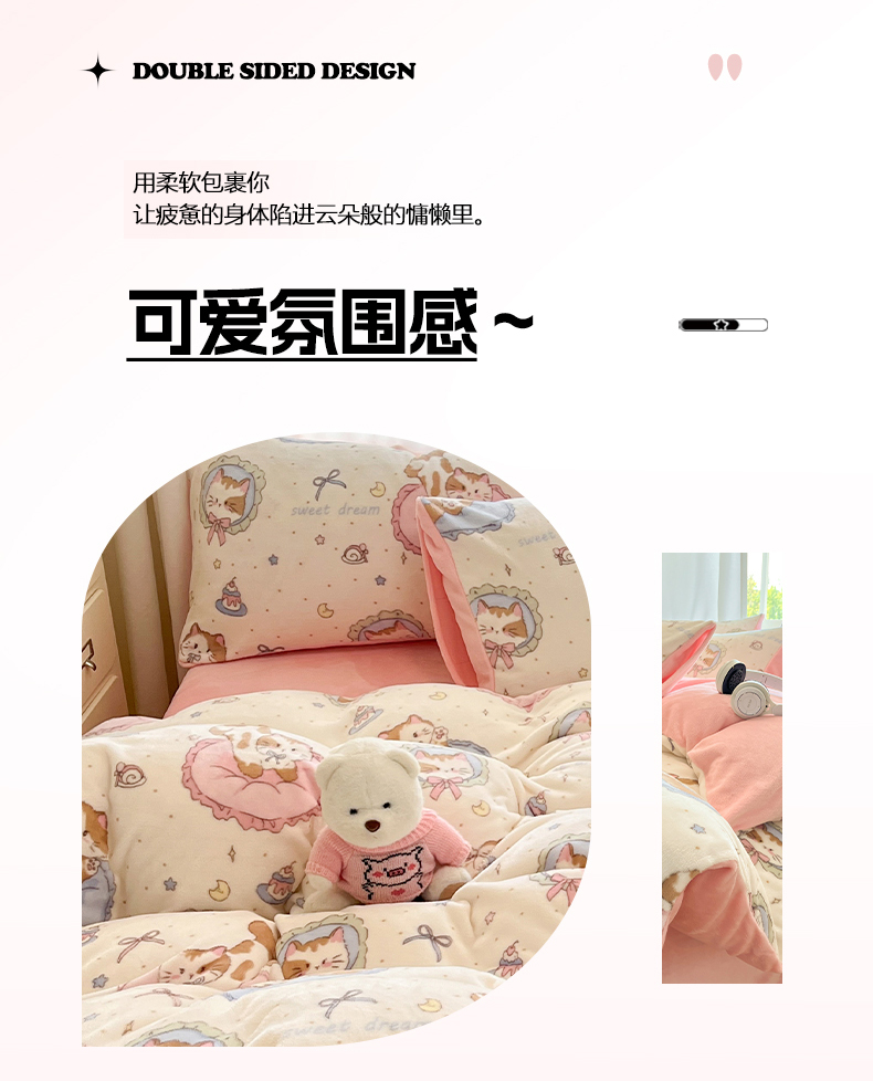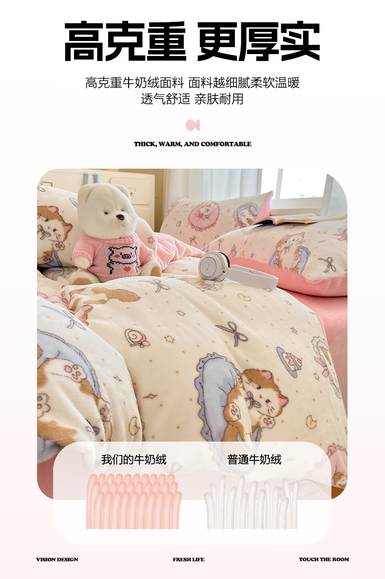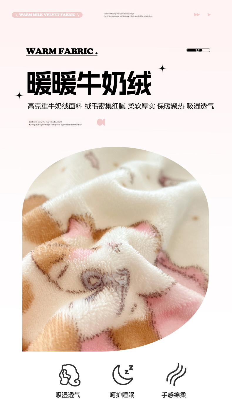 吉象家纺 2025新款高克重牛奶绒印花被套 萝莉猫咪