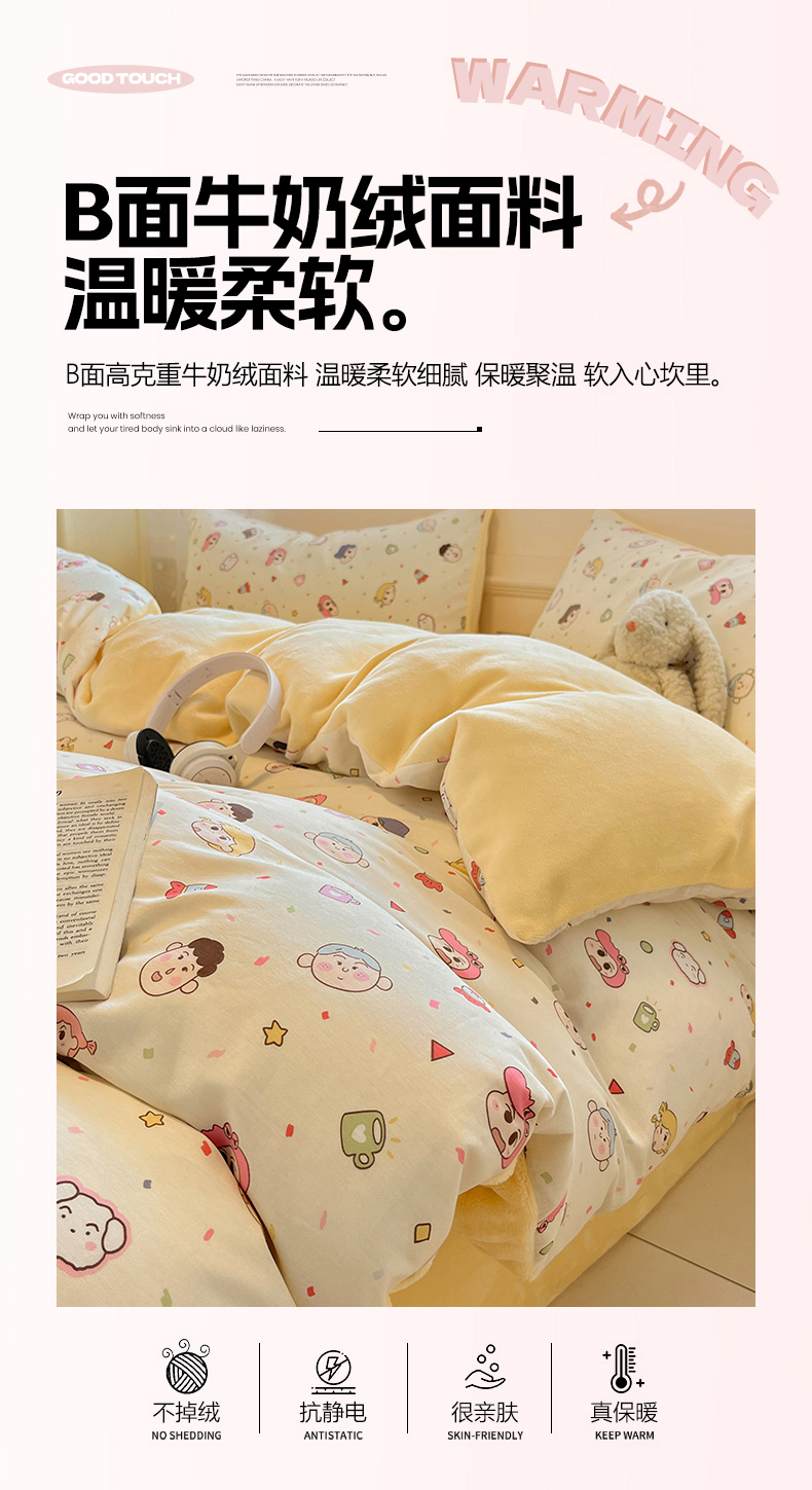 商品名称:吉象家纺 2025新款全棉牛奶绒印花四件套 棉绒-童趣萌新