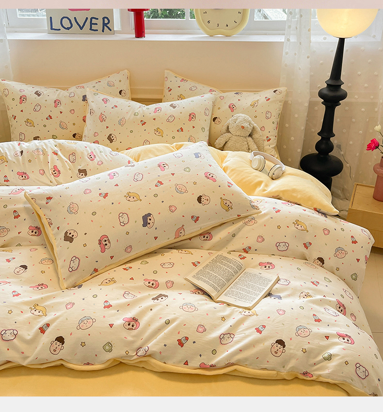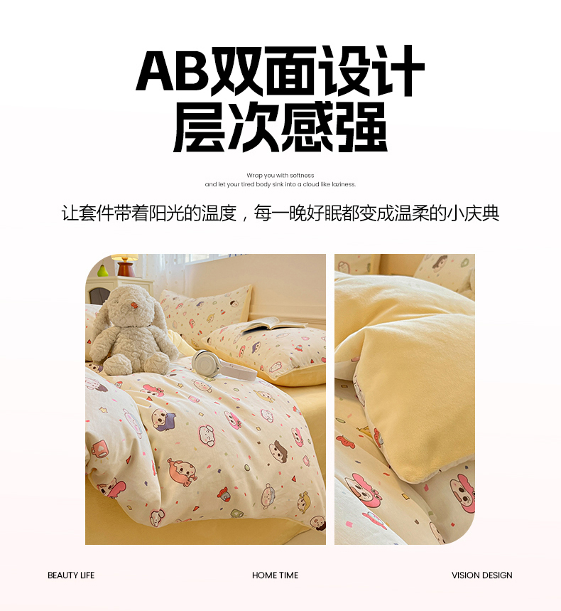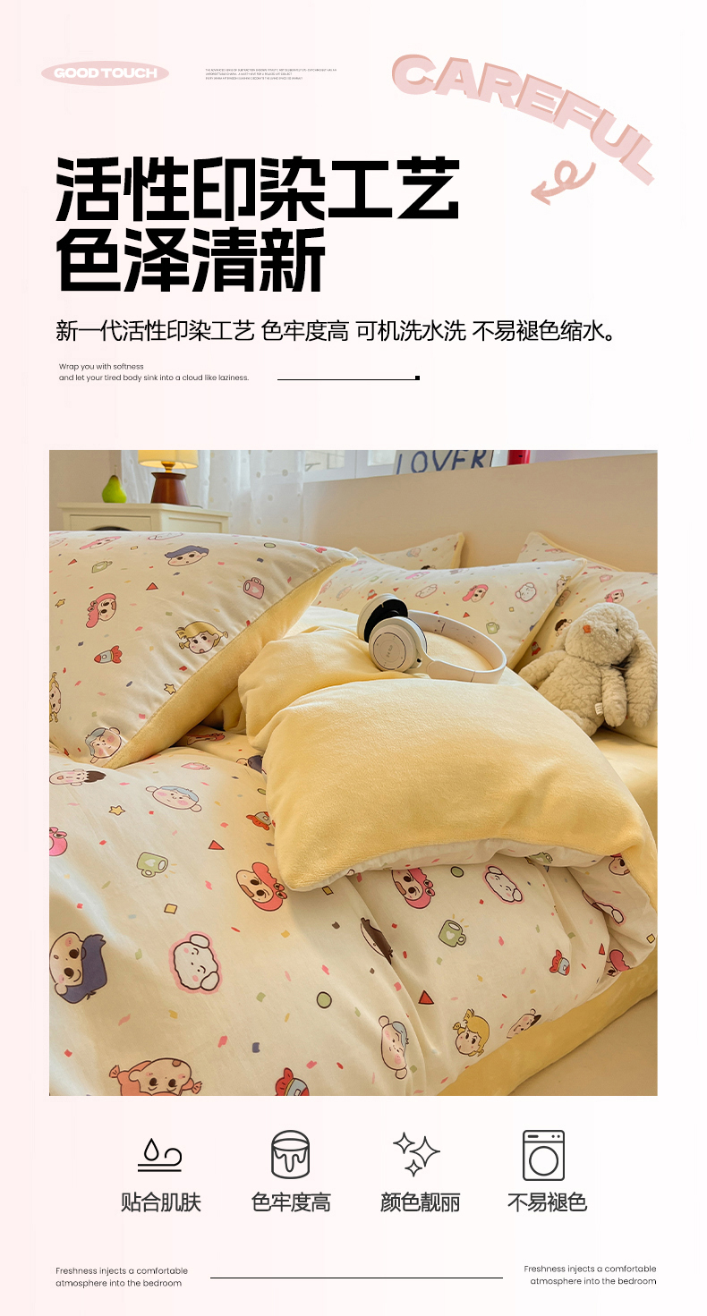吉象家纺 2025新款全棉牛奶绒印花四件套 棉绒-童趣萌新