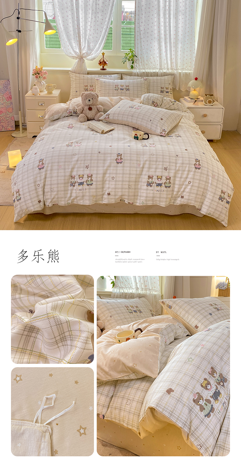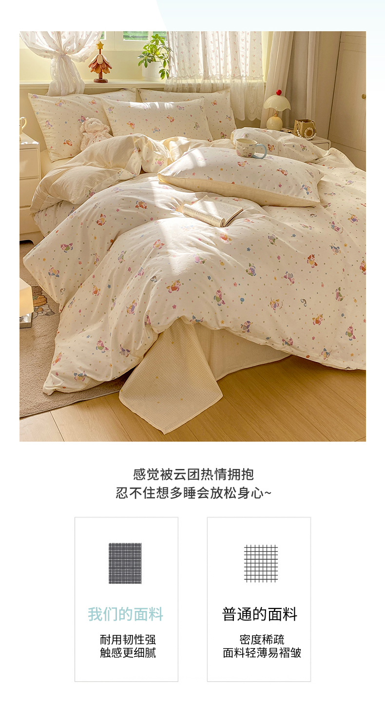 当前位置: 91家纺网 > 商品网购 > 床品套件 > 四件套 > 全棉普通四件套 > 红日子纺织品 2026新款12868纯棉全棉印花卡通系列四件套 甜心乐园-紫