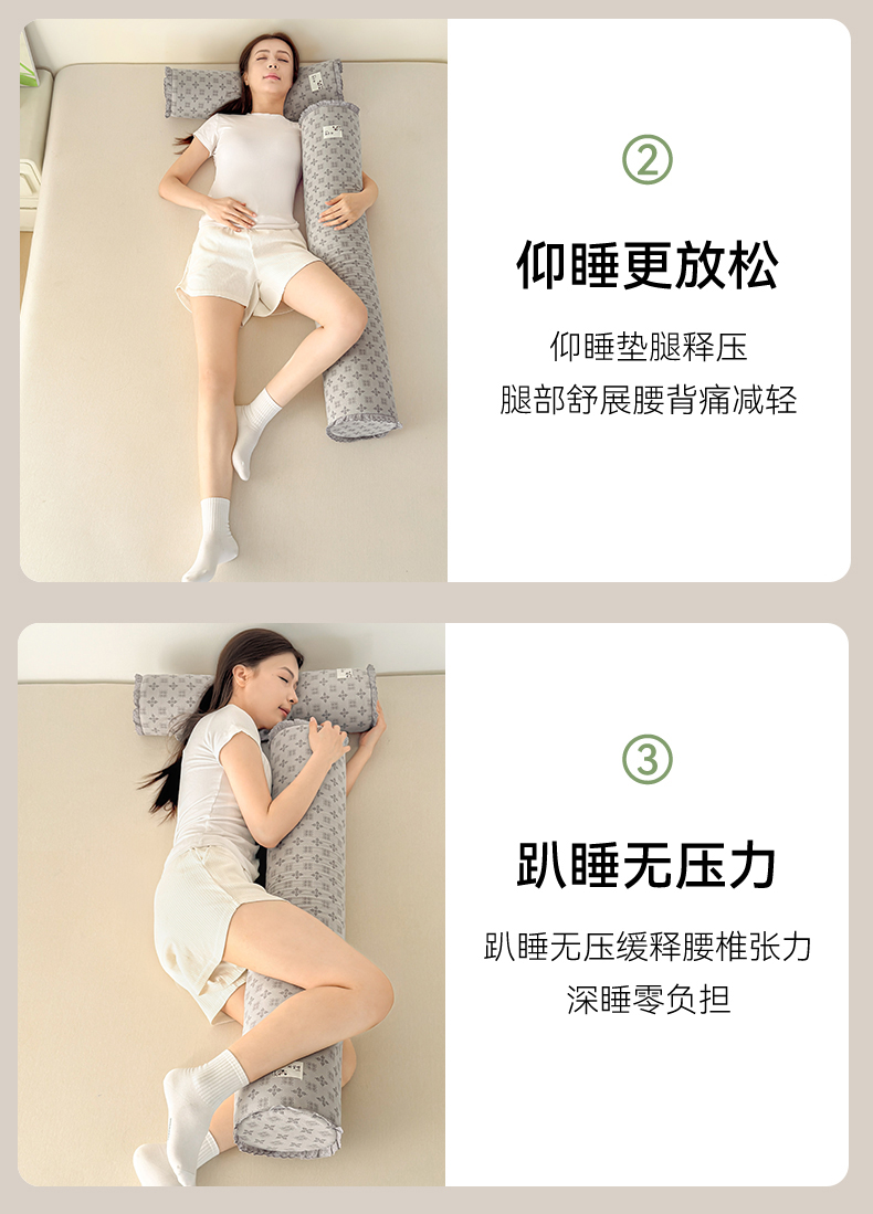 麦肯锡 2025新款记忆棉圆柱伴眠长抱枕 枕头 灰色【模特图】/对