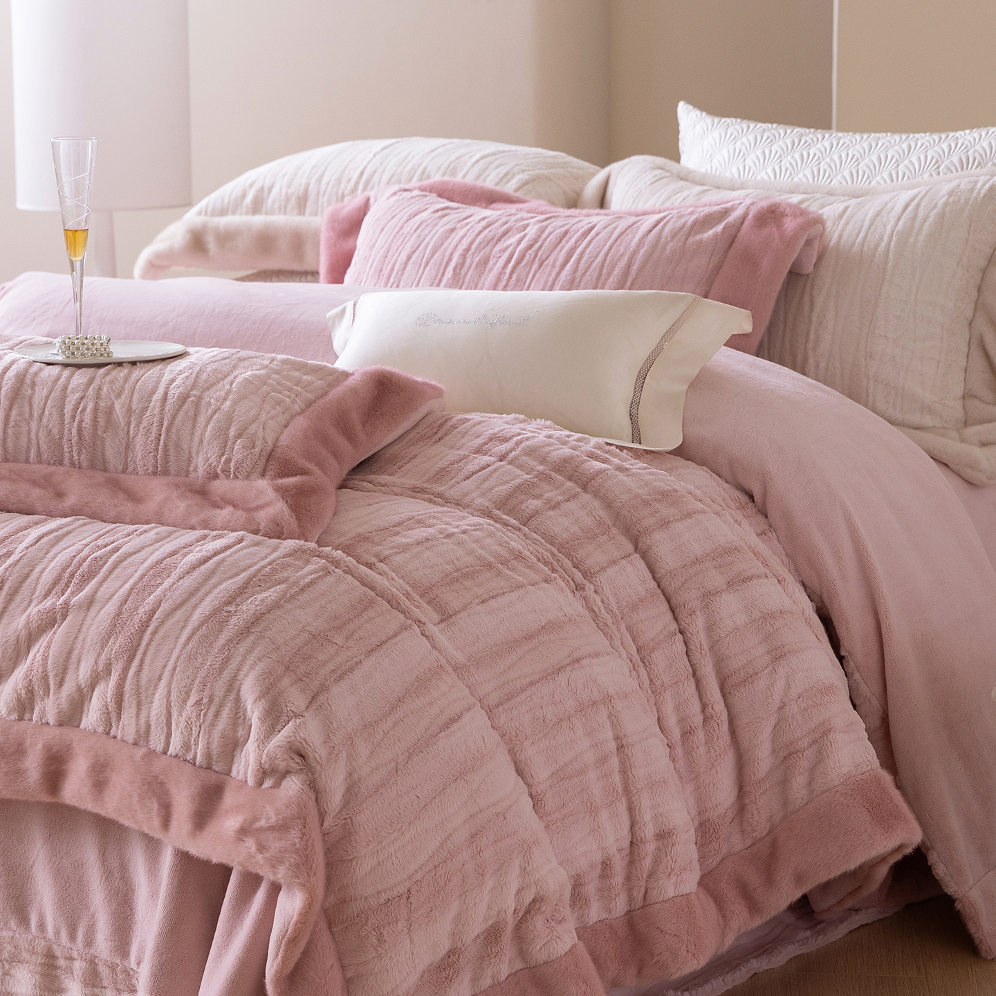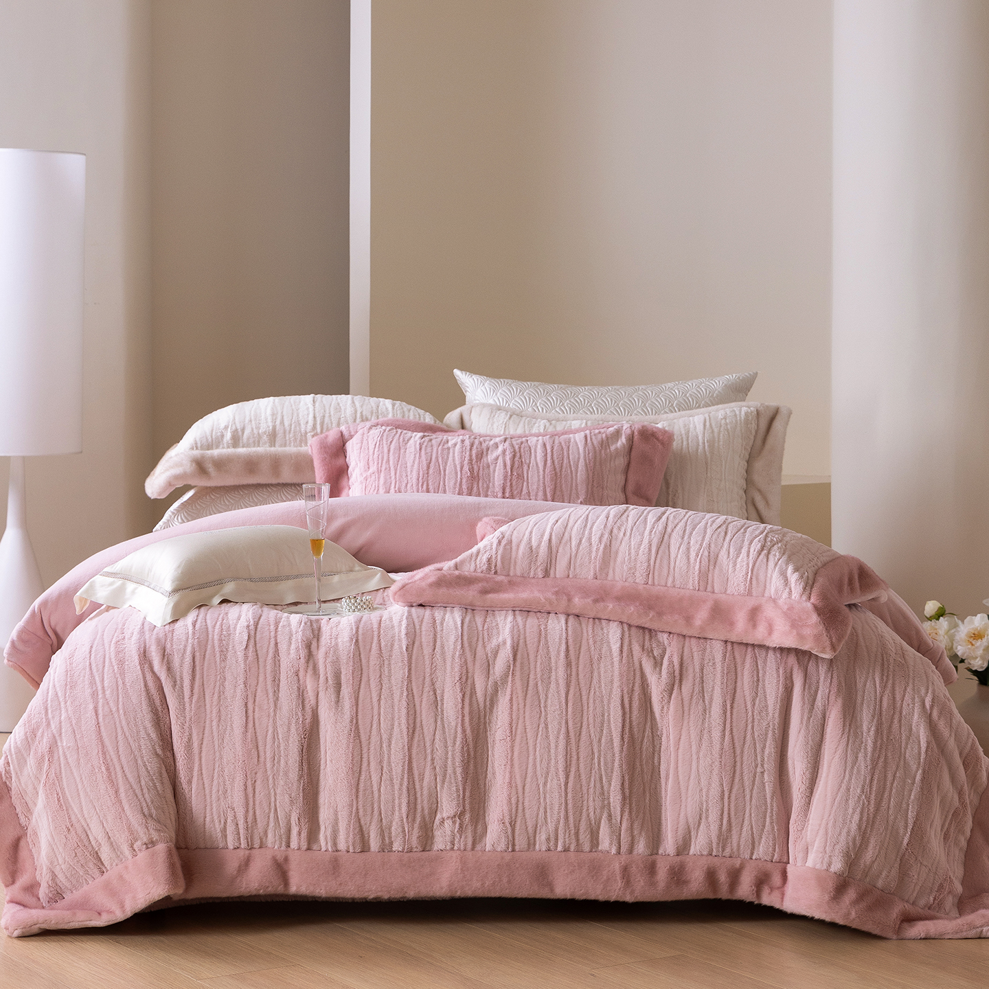 商品名称:佳汐蓝家纺 2025新款压花牛奶绒四件套-璀璨人生 控价:券后不低于438 璀璨人生-粉色