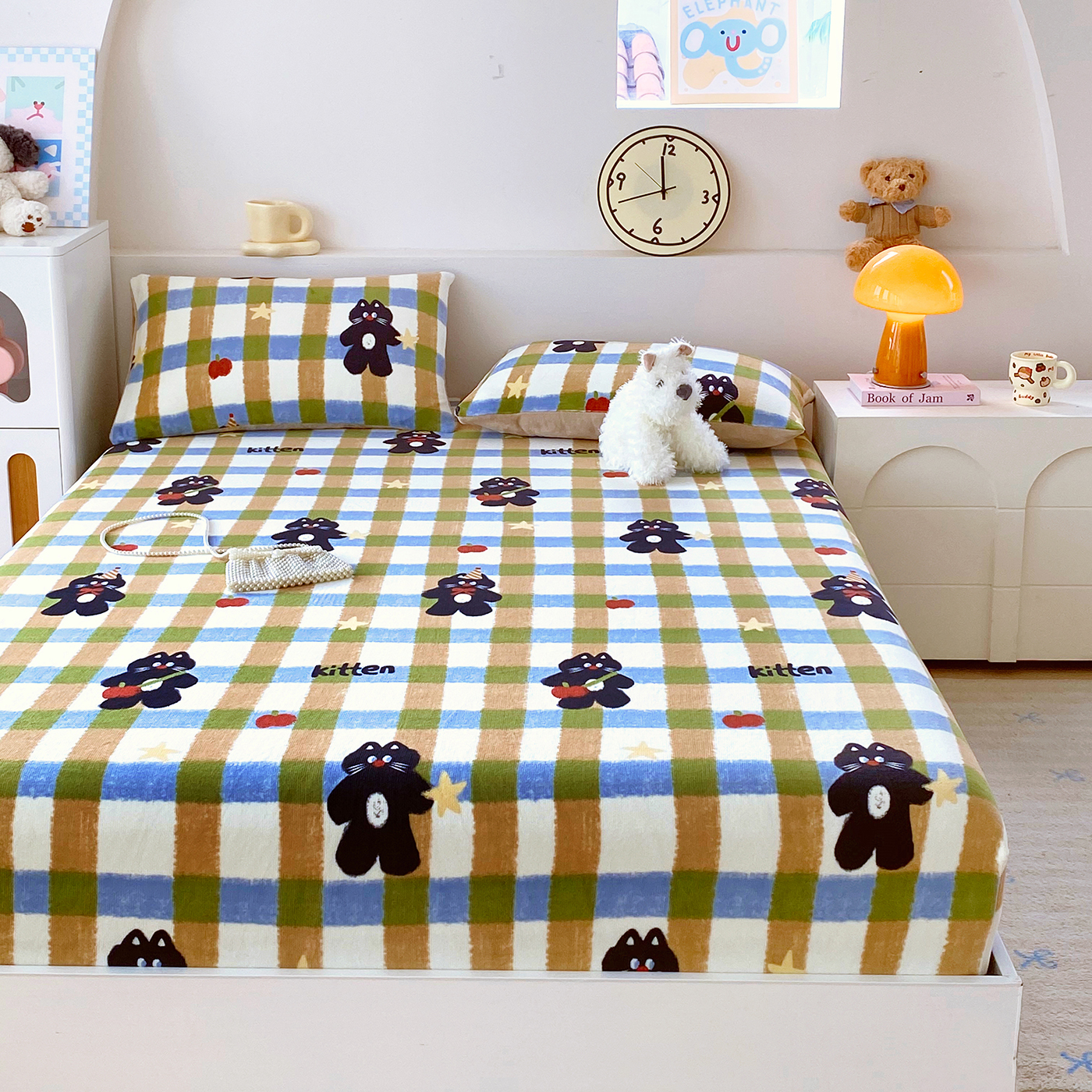 (总)葡萄家 2025年新款新增花型牛奶绒印花单床笠萌系卡通单品床笠床笠单件,哈曼猫,豹纹猫粉,豹纹猫蓝,波西狗,萱花,雪花熊