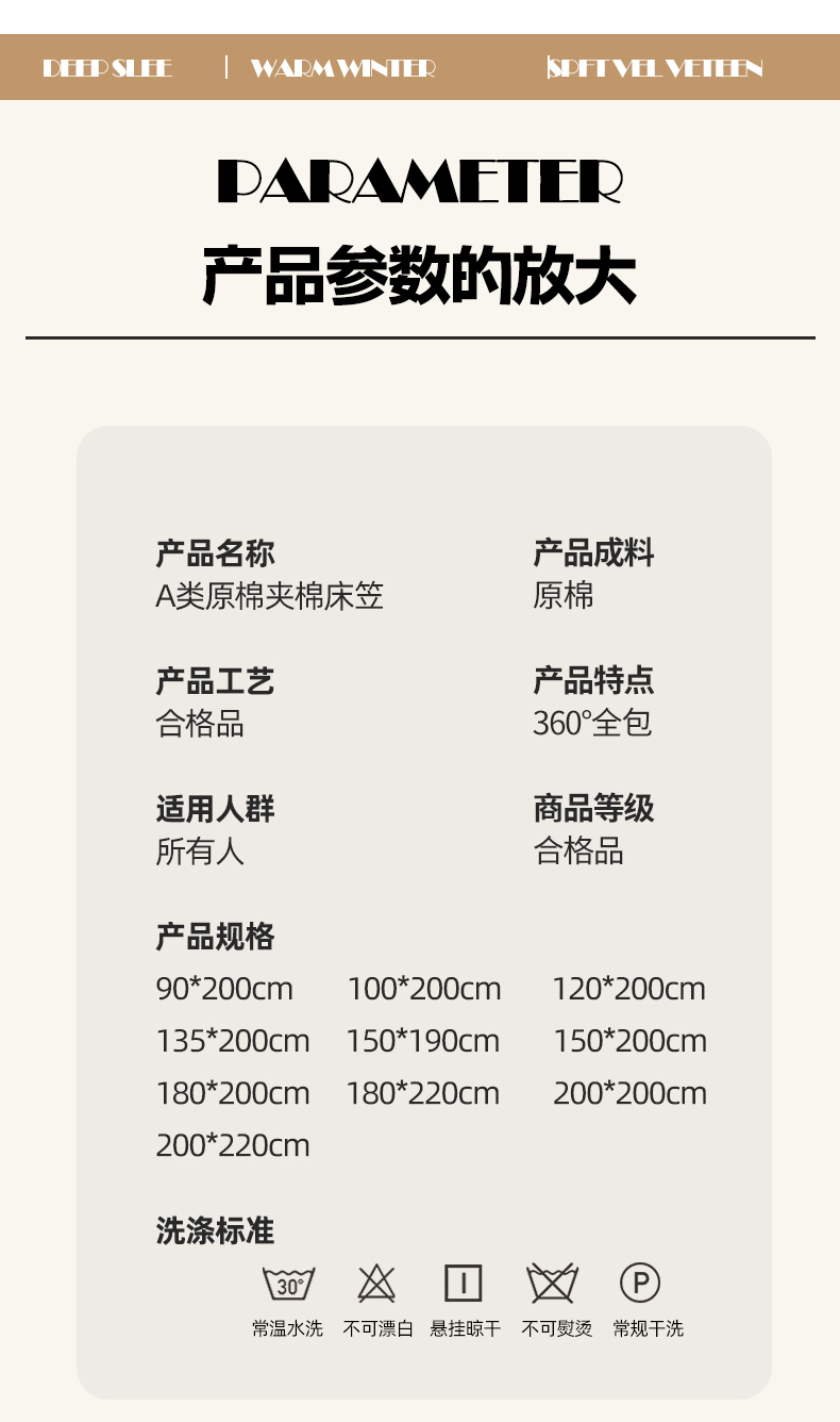 商品名称:(总)优品惠 2025新款A类原棉夹棉床笠系列