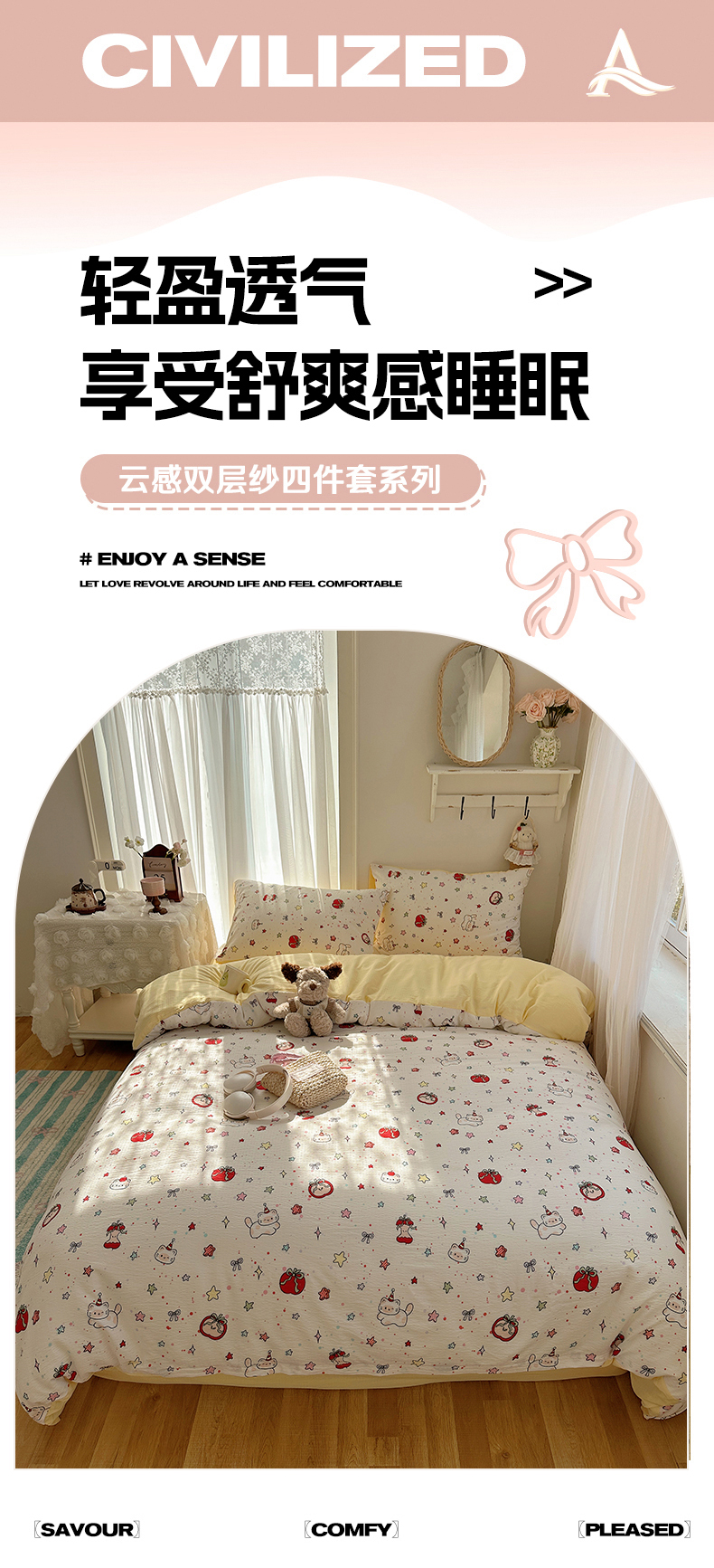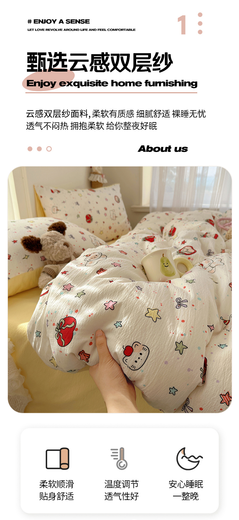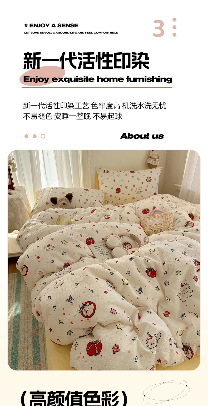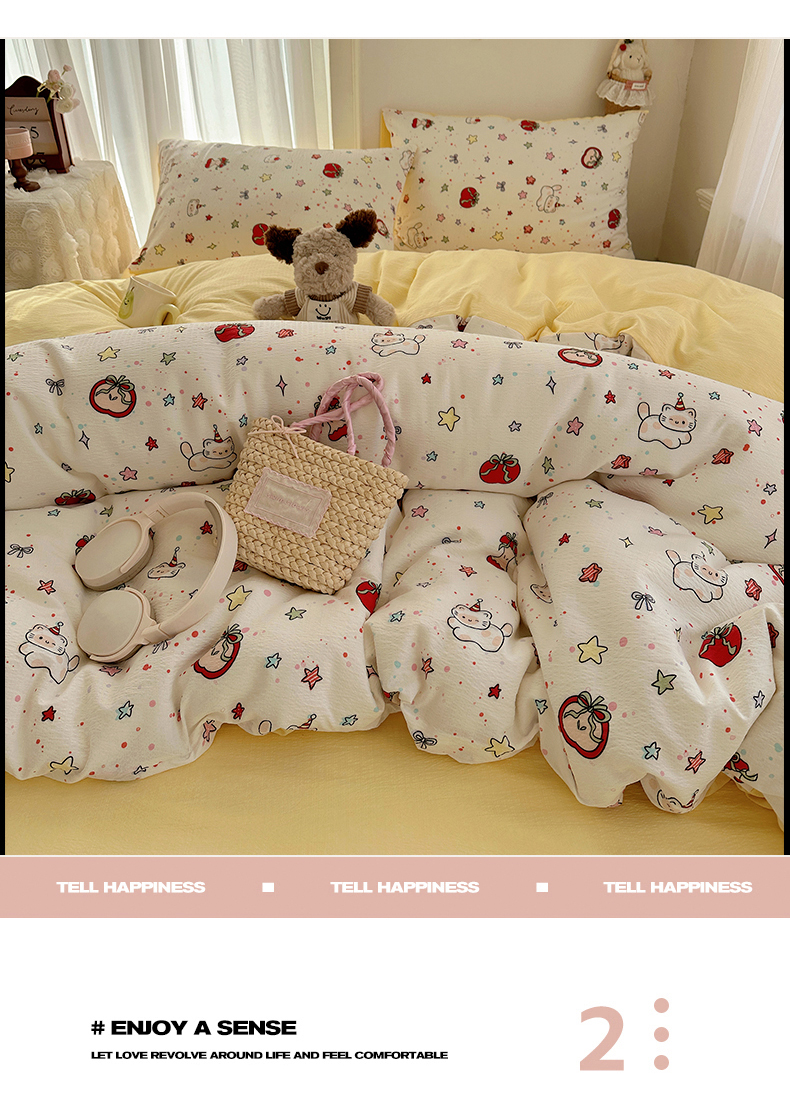 当前位置: 91家纺网 > 商品网购 > 床品套件 > 四件套 > 双层纱四件套 > 星禾优选 2025新款全新热款敲可爱的奶呼呼云感双层纱简约四件套系列(提供买家秀) 苹果小怪