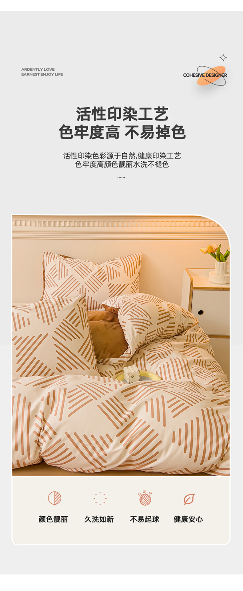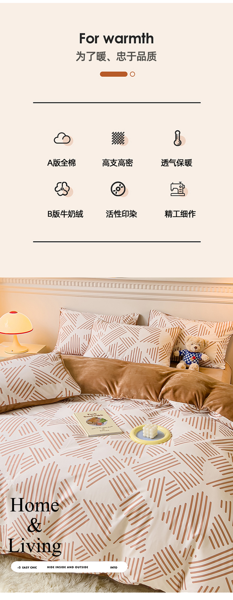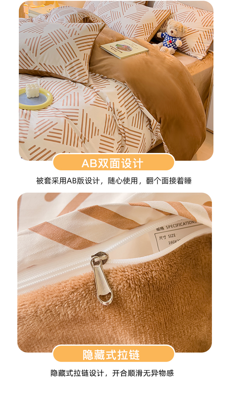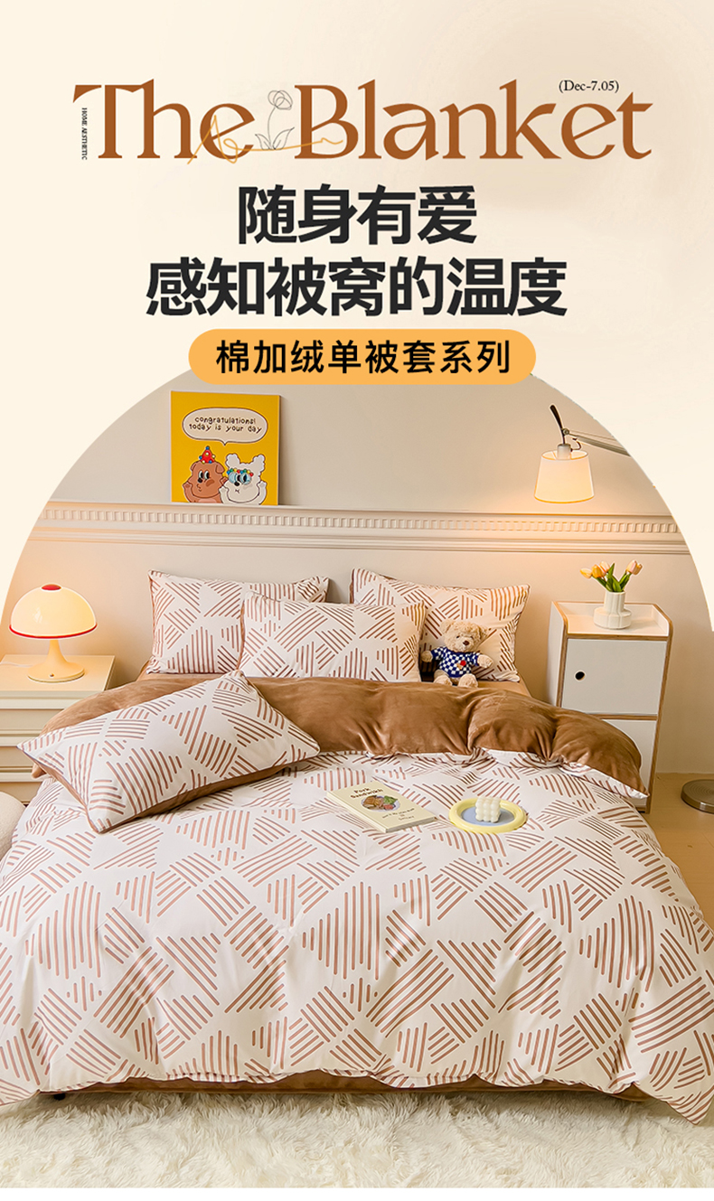金鑫汇家纺 2025新款全棉豆豆绒系列单被套-棉加绒系列 棉加绒-简格卡琪