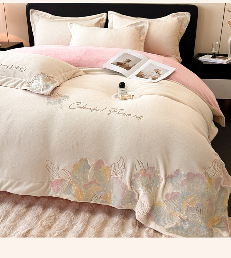 (总)2025新款牛奶绒刺绣工艺高克重四件套-安娜