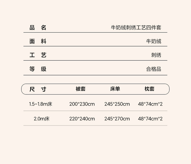 商品名称:(总)2025新款牛奶绒刺绣工艺高克重四件套-安娜