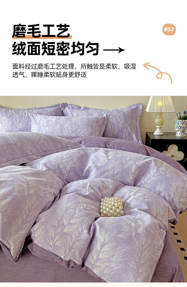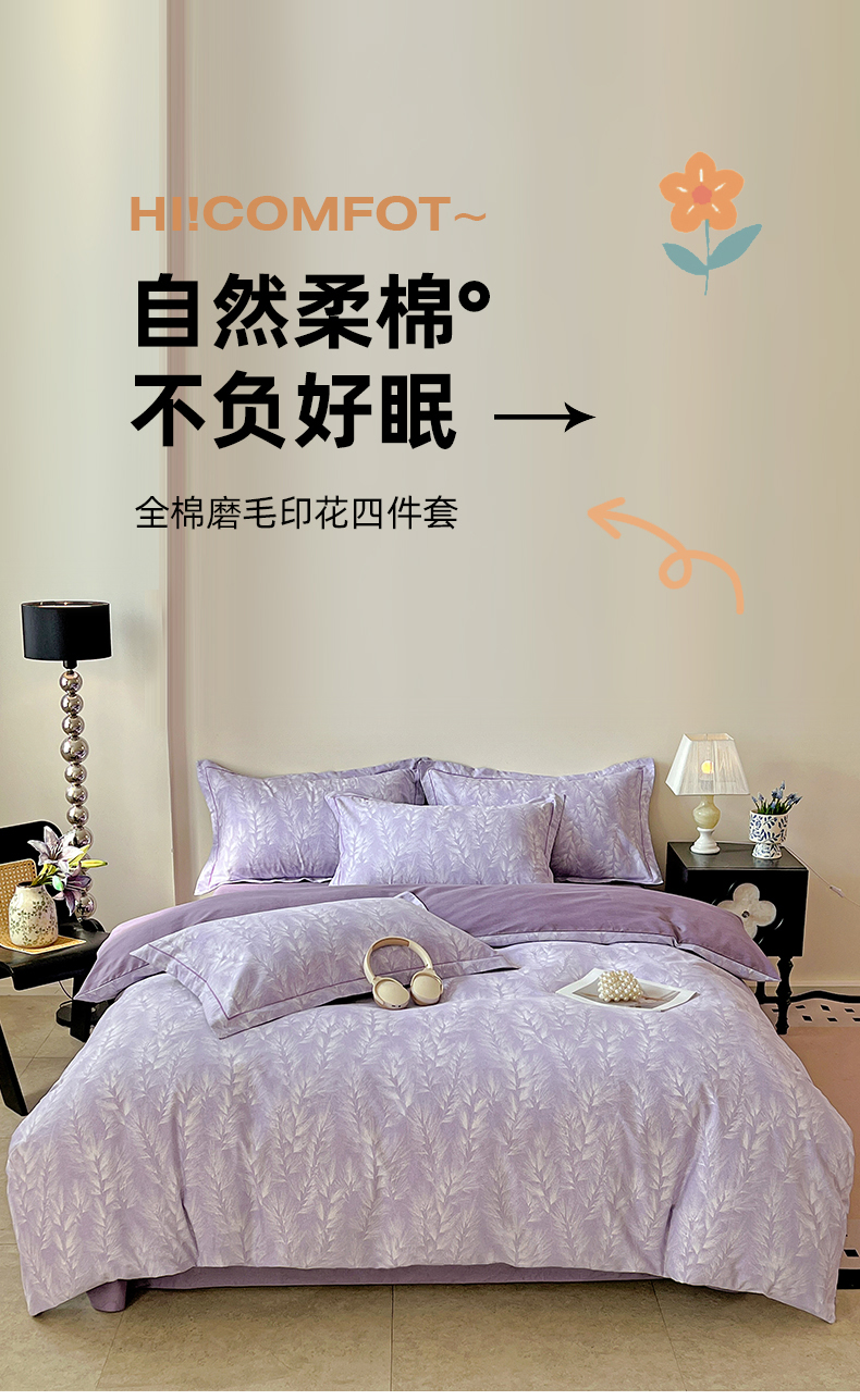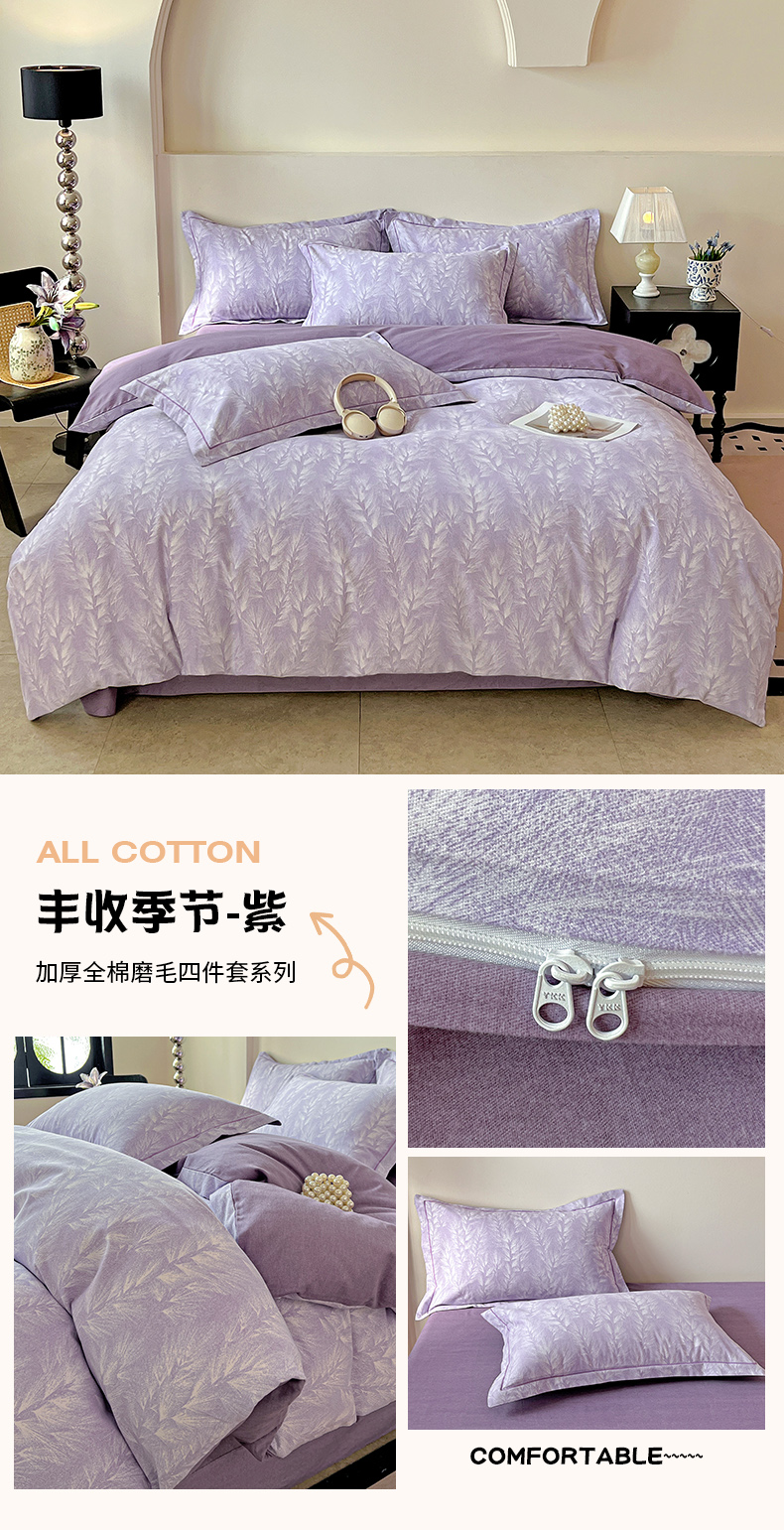 亿梵家居 2026新款全棉纯棉磨毛四件套 丰收季节-紫