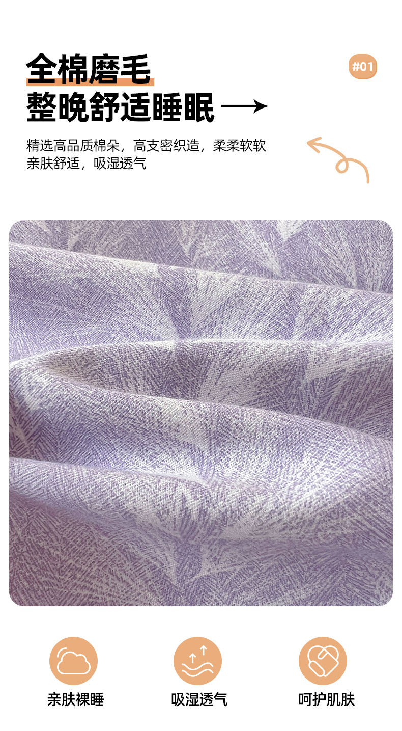 商品名称:亿梵家居 2026新款全棉纯棉磨毛四件套 丰收季节-紫