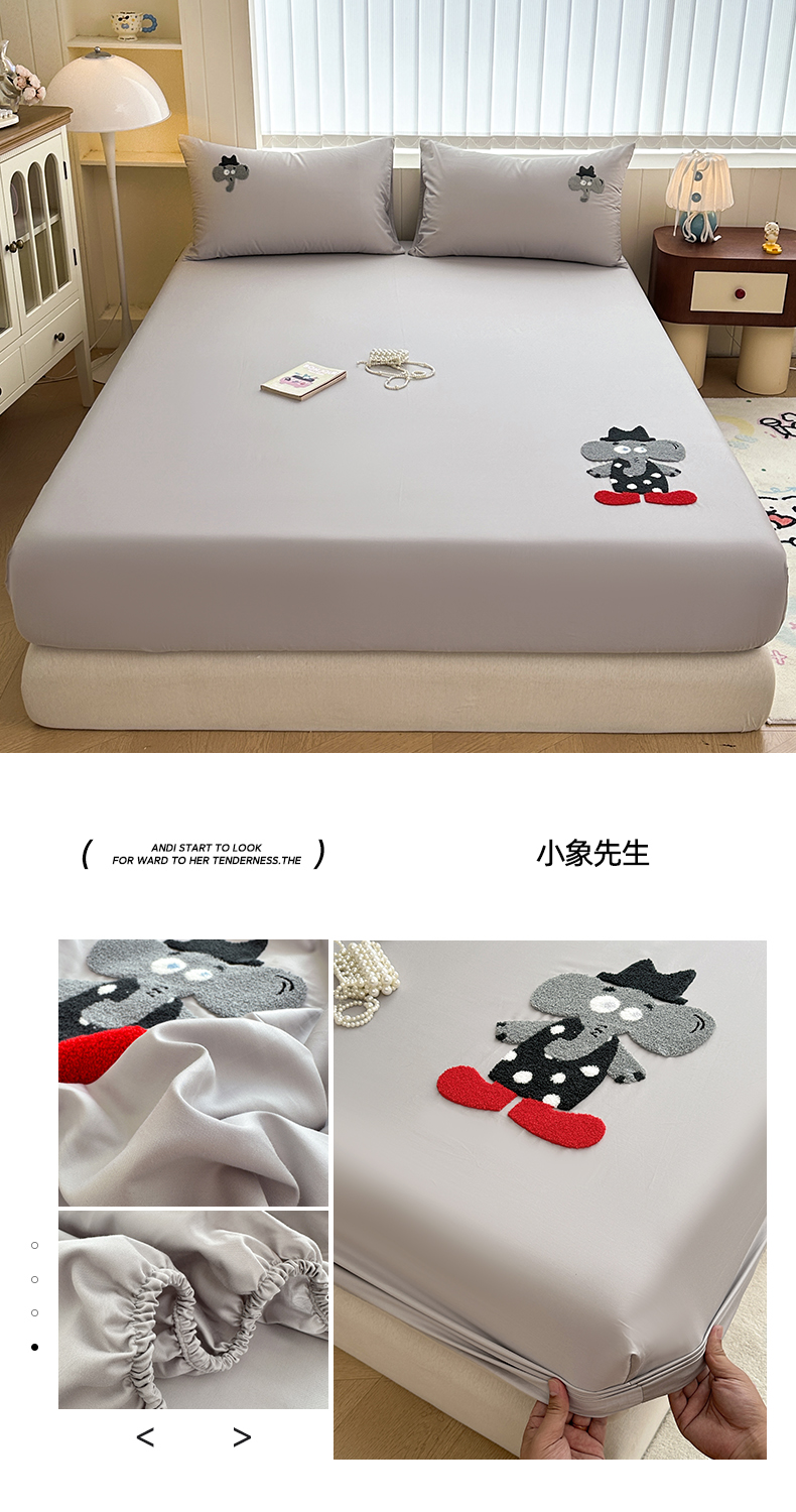商品名称:卡诗兰 2025新款100支全棉磨毛毛巾绣床笠三件套 小象先生