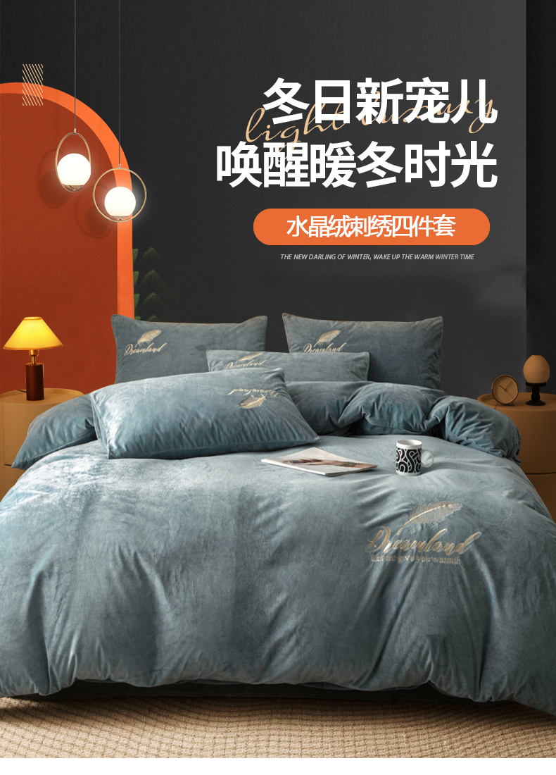 当前位置: 91家纺网 > 商品网购 > 床品套件 > 四件套 > 牛奶绒四件套 > 爱彼家纺 2026新款冬季酒店风水晶绒羽毛刺绣四件套-系列五 羽毛-浅紫