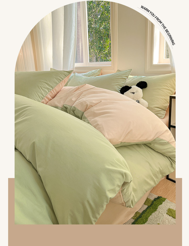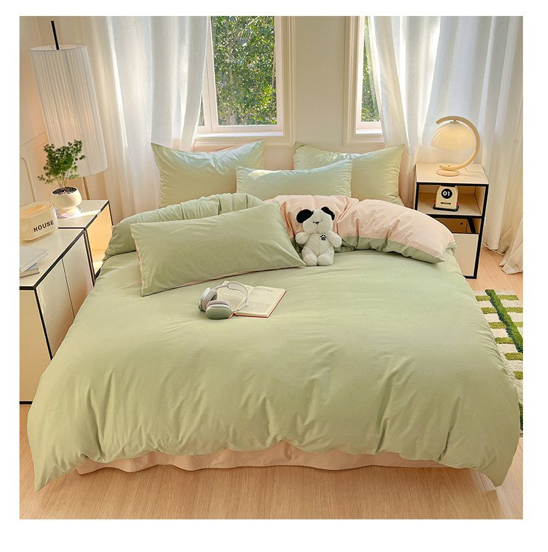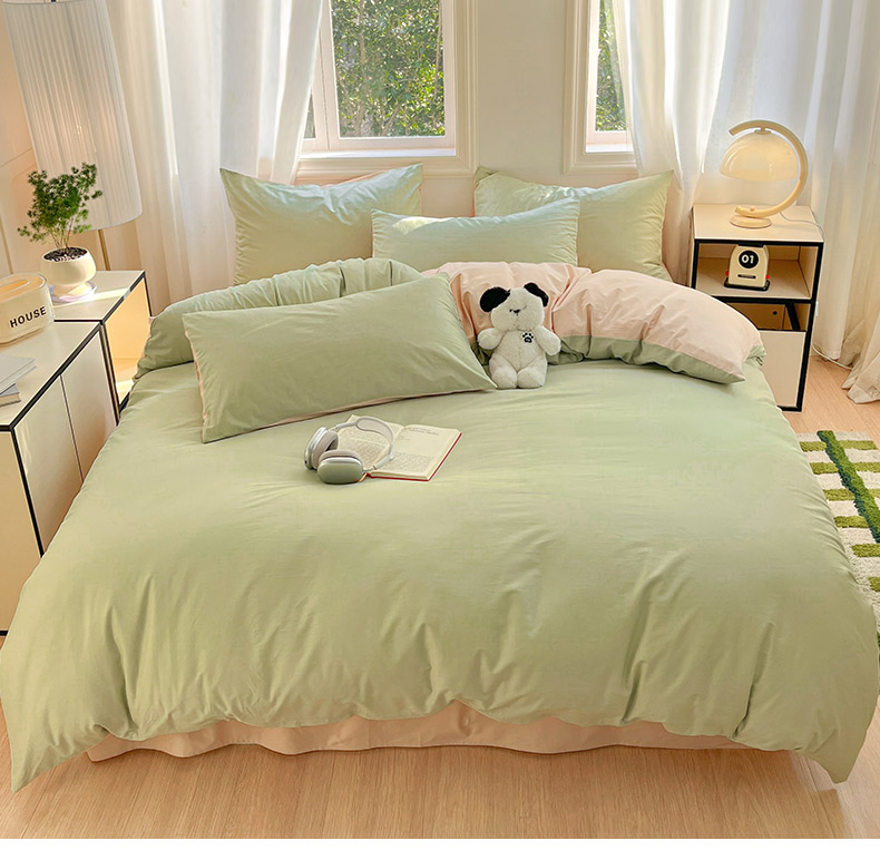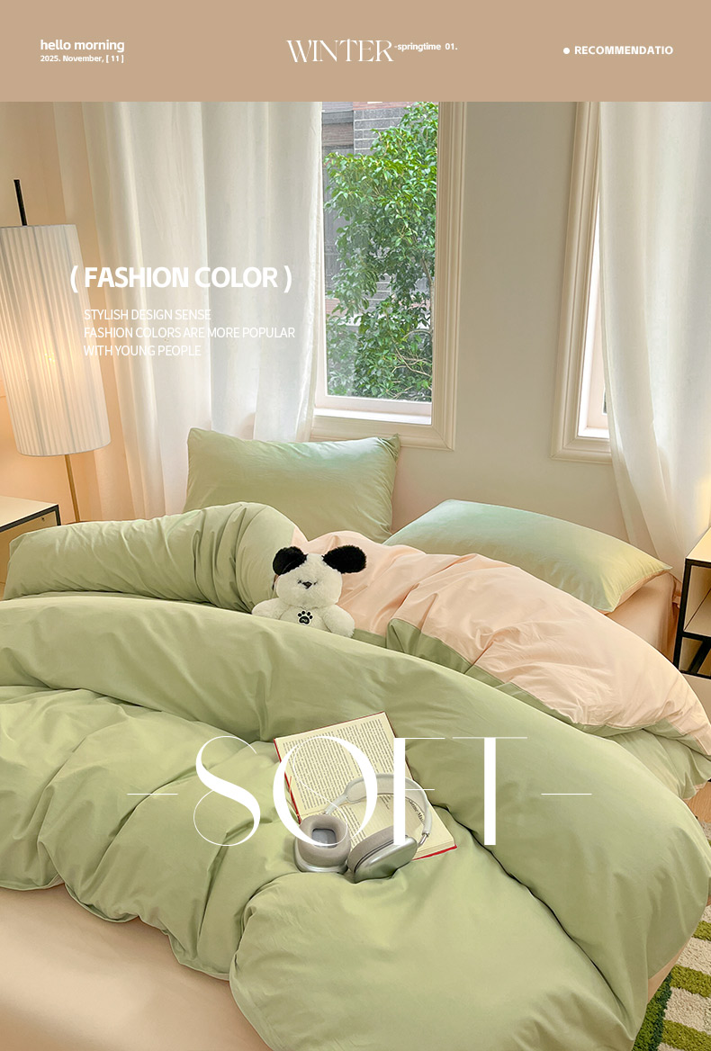 当前位置: 91家纺网 > 商品网购 > 床品套件 > 四件套 > 全棉普通四件套 > 泽西家纺+V17798841158发大图 2026新品A类全棉13376简约纯色双拼全棉四件套单被套枕套三件套 橄榄绿+奶茶