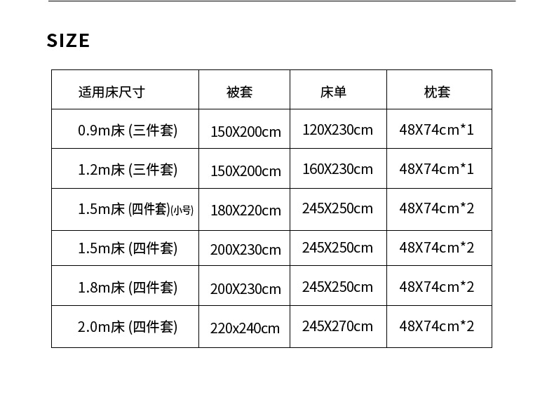 0.9m床单款三件套-被套150*200 | ¥75.00 |