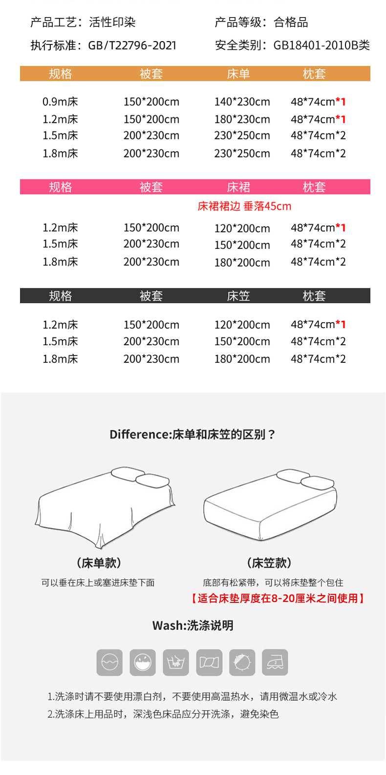 【床裙款】1.8四件套-被套200x230 | ¥150.00 |