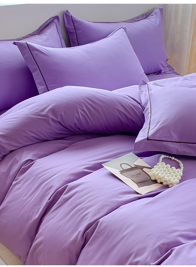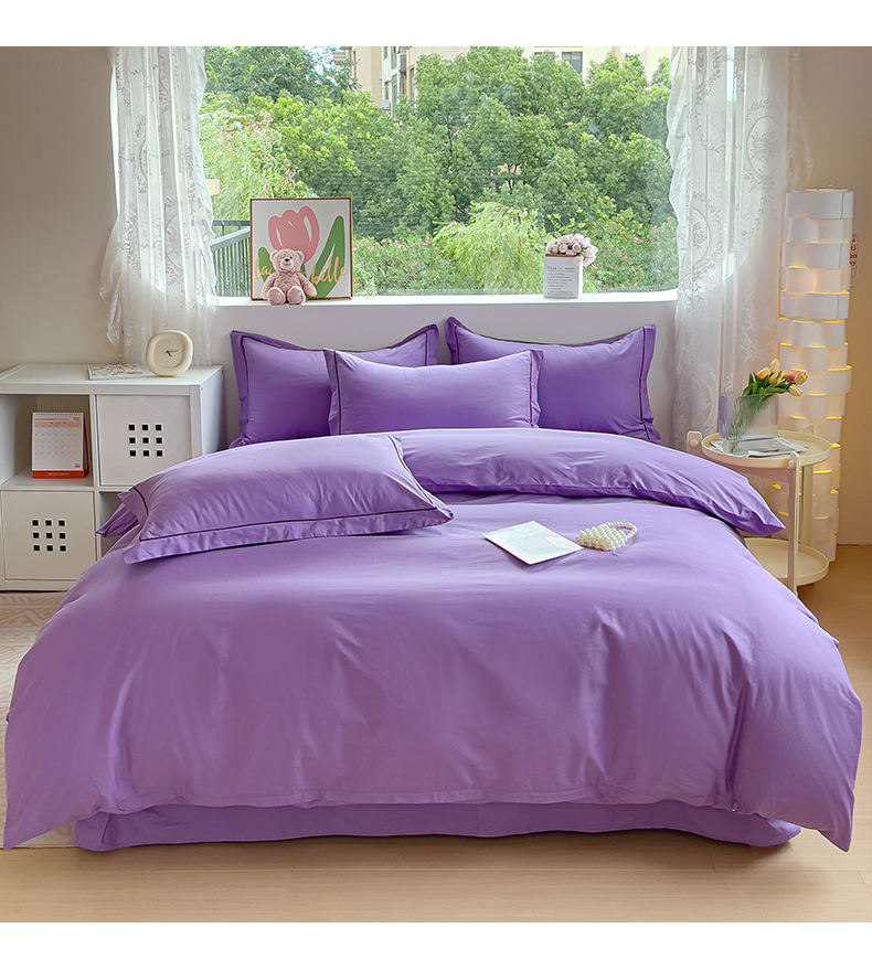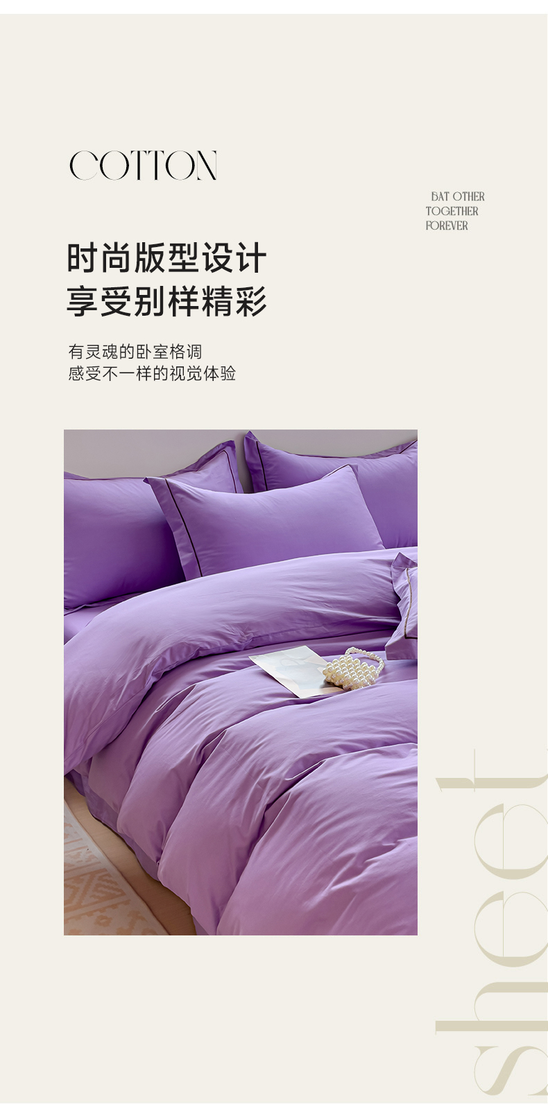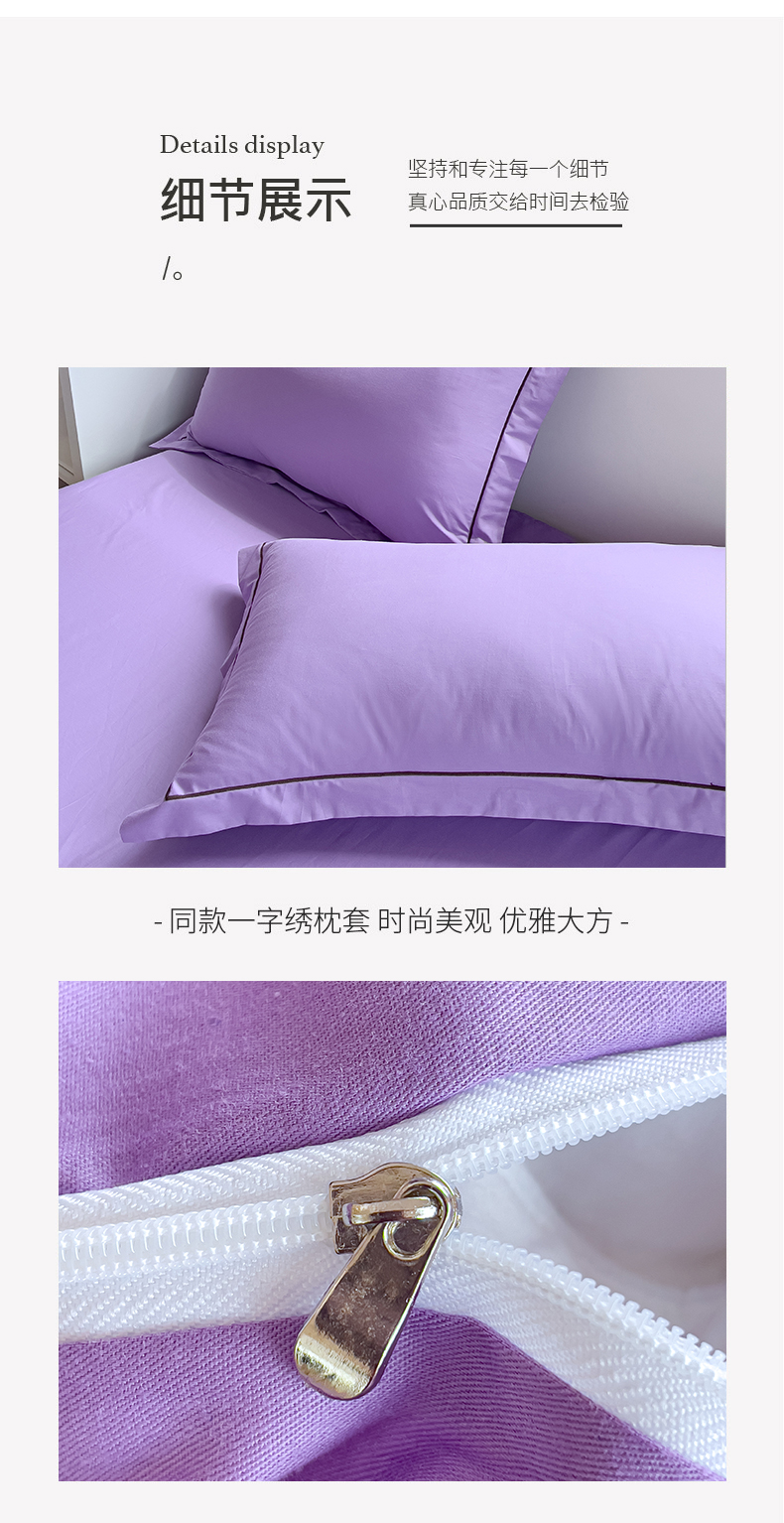 当前位置: 91家纺网 > 商品网购 > 床品套件 > 四件套 > 全棉普通四件套 > 锦彩家居 2026新款40支正宗13372双拼纯色全棉四件套酒店宾馆民宿学生三件套(可定制)标准号的床单是圆角吊边;小号和加大的床单都是直角 葡萄紫
