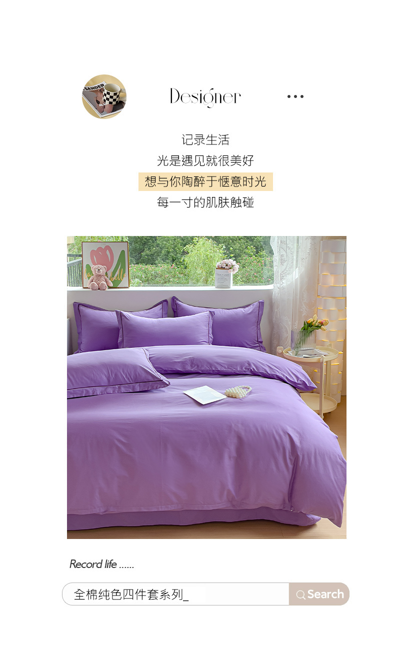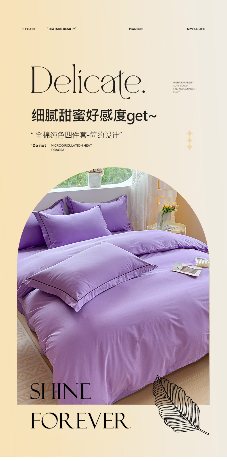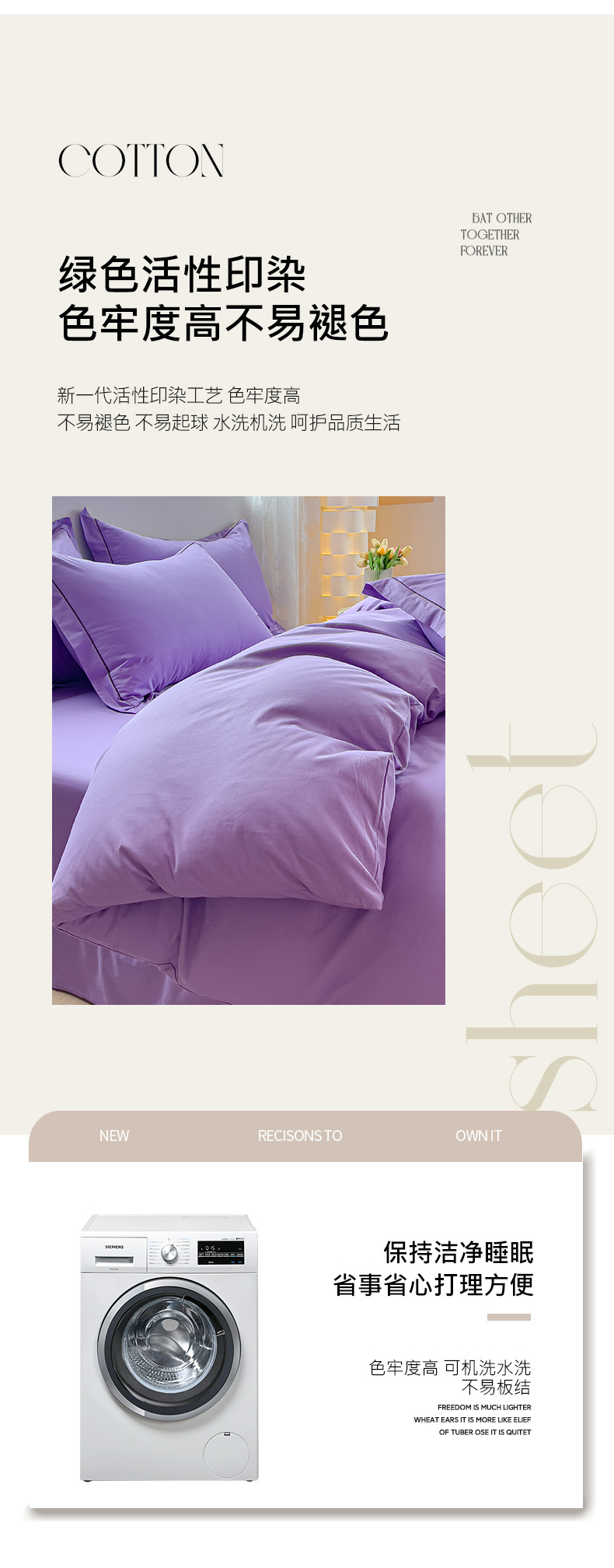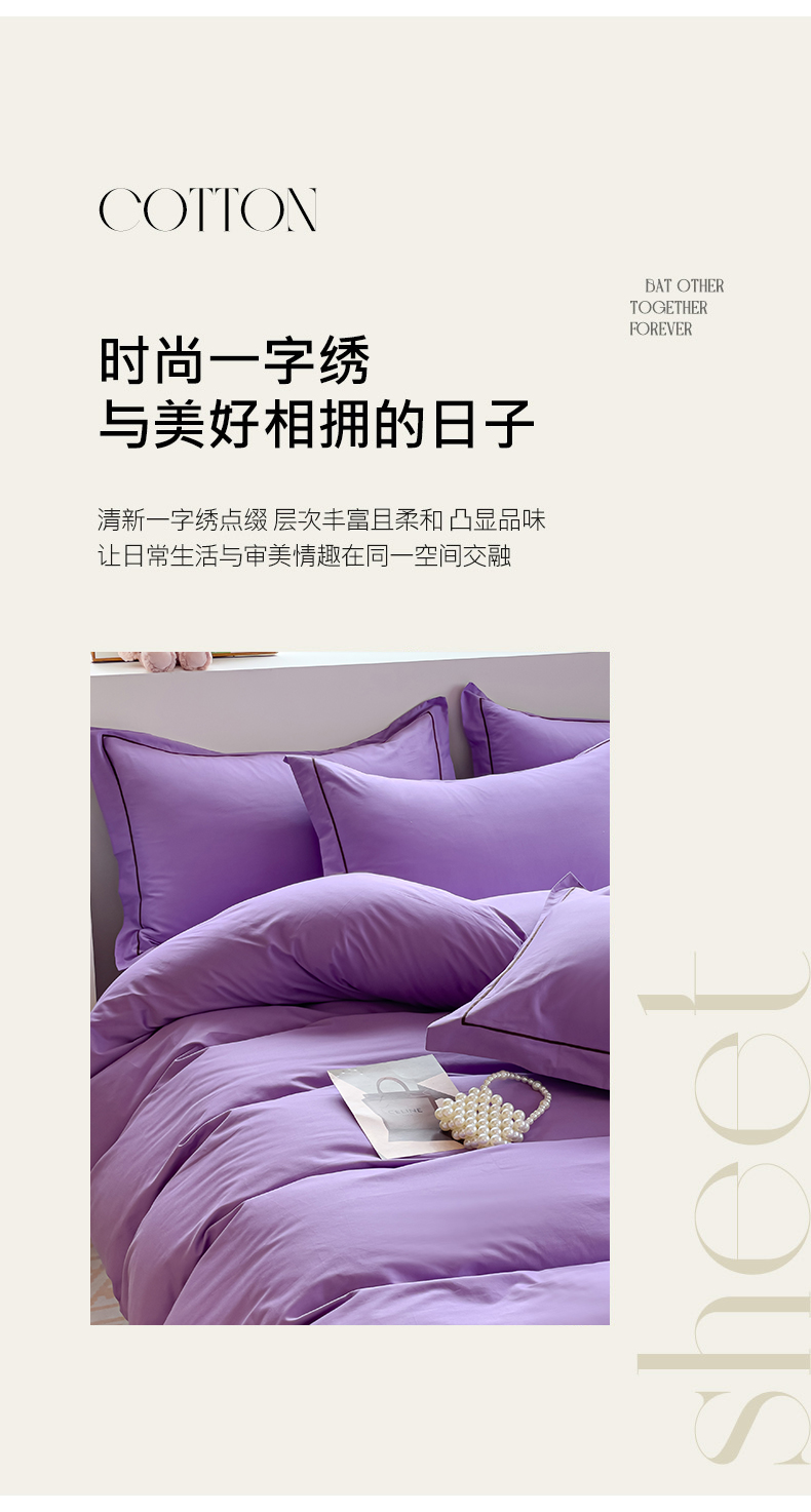 当前位置: 91家纺网 > 商品网购 > 床品套件 > 四件套 > 全棉普通四件套 > 锦彩家居 2026新款40支正宗13372双拼纯色全棉四件套酒店宾馆民宿学生三件套(可定制)标准号的床单是圆角吊边;小号和加大的床单都是直角 葡萄紫