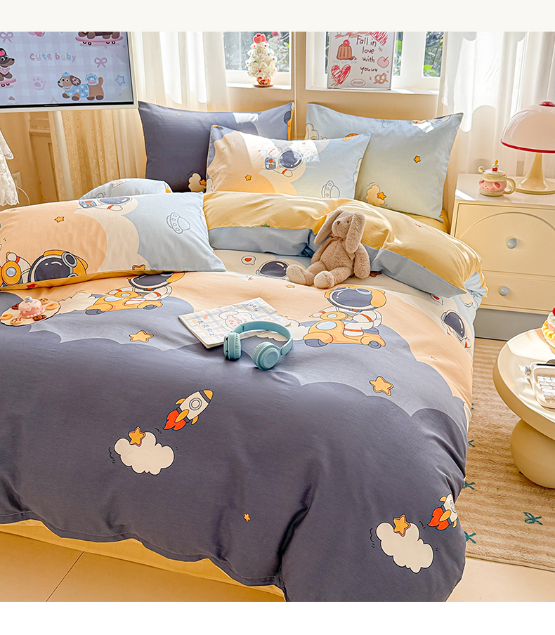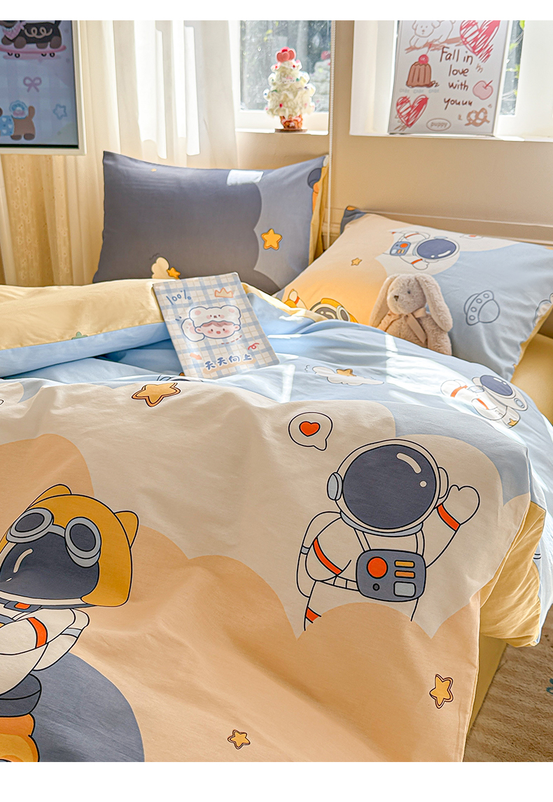 典曼家纺 2026新款全棉印花四件套-系列二 蓝星太空人