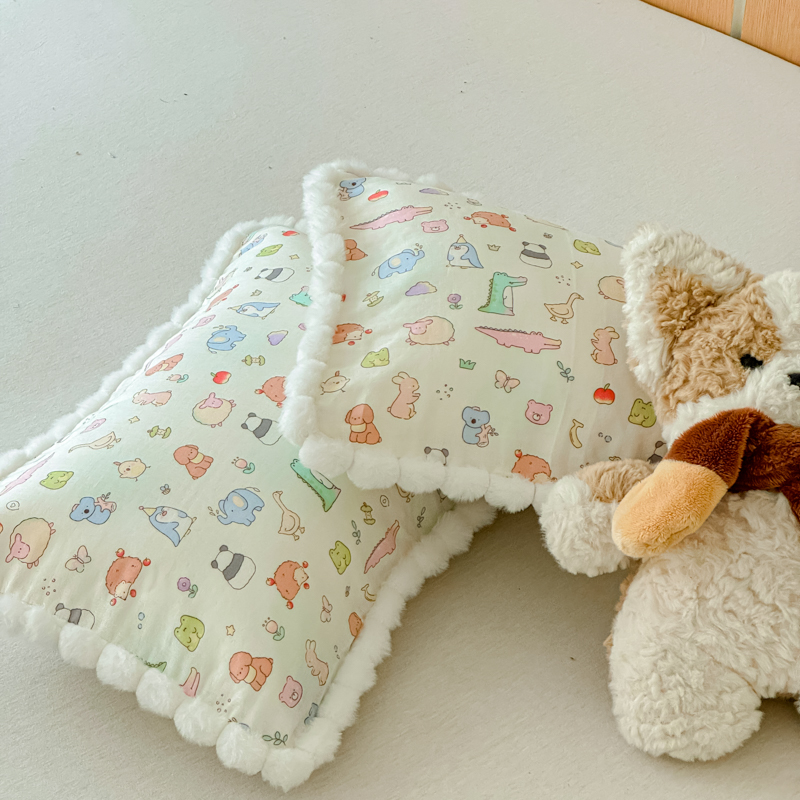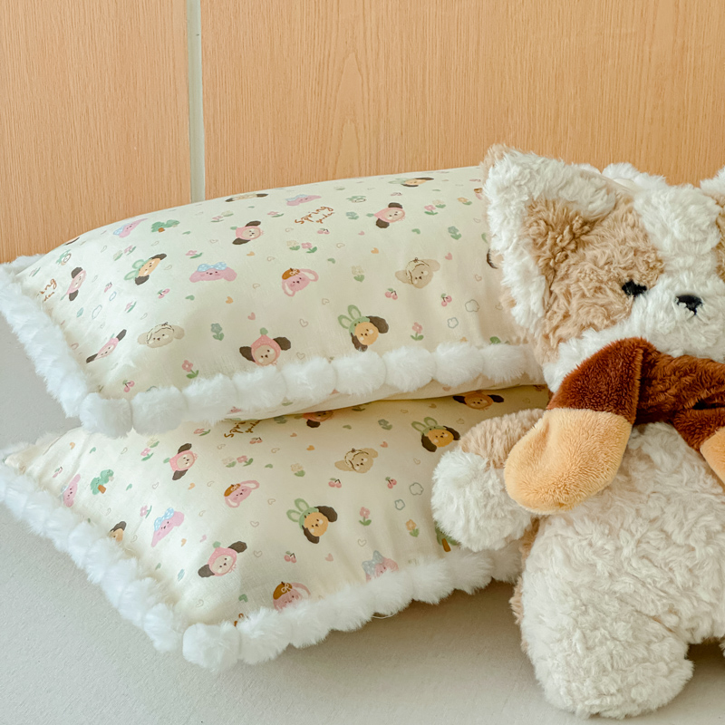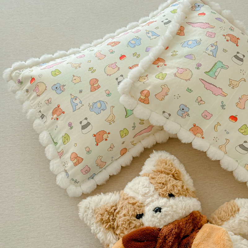 商品名称:(总)金丝鸟家纺 2026新款全棉双层纱毛球款枕套多规格儿童枕套