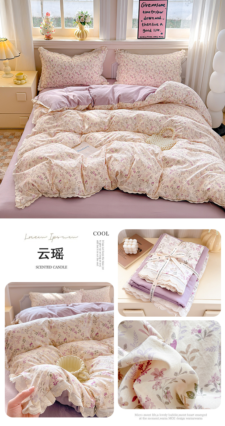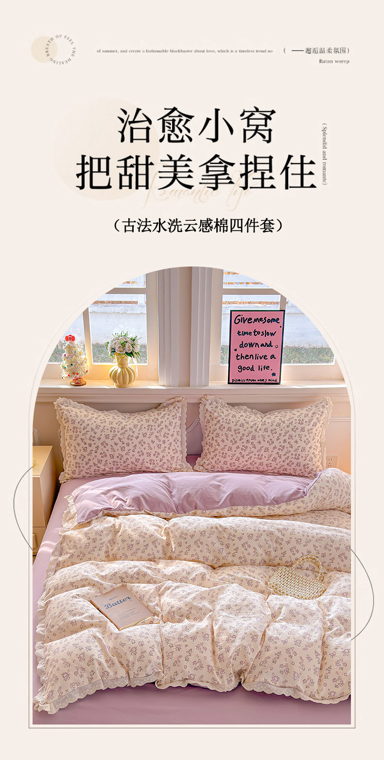 (总)芯贝儿 2026新款A类仿棉古法水洗棉复古法式花边四件套(提供买家秀),艾莎,花梦,锦上花开,兰溪,漫花蝶舞,甜菊,屹花,雨沫,组合图仅供参考不可下单