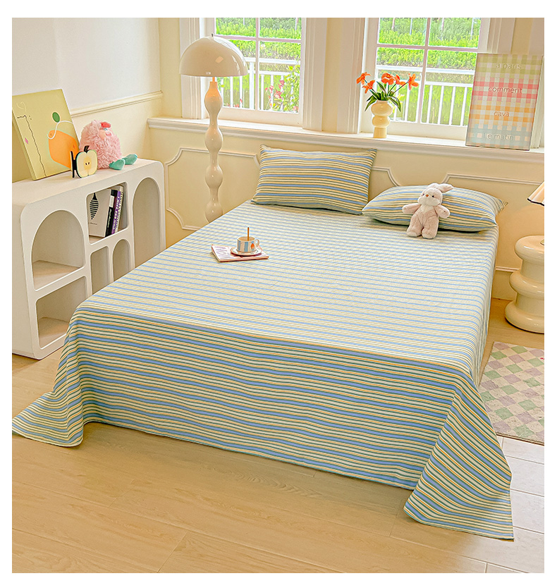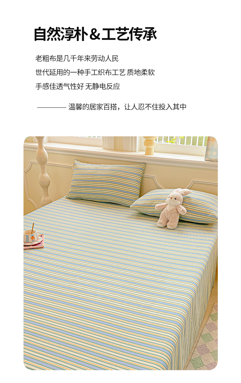 • 91家纺网 家纺一手货源 找家纺 爱彼家纺 2026新款升级细纱老粗布床单款凉席席子单床单床单三件套 桔灰细条