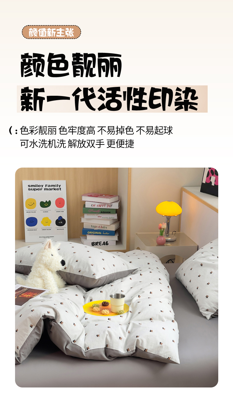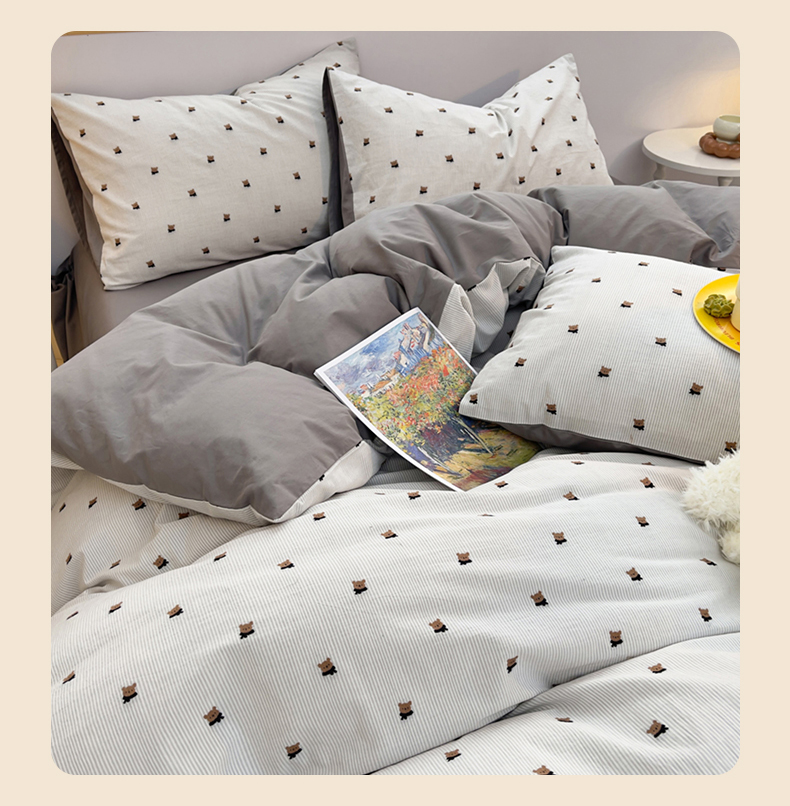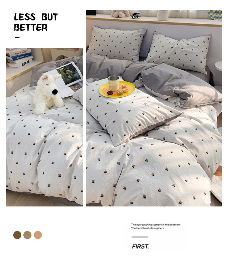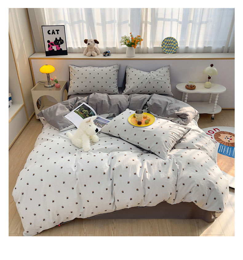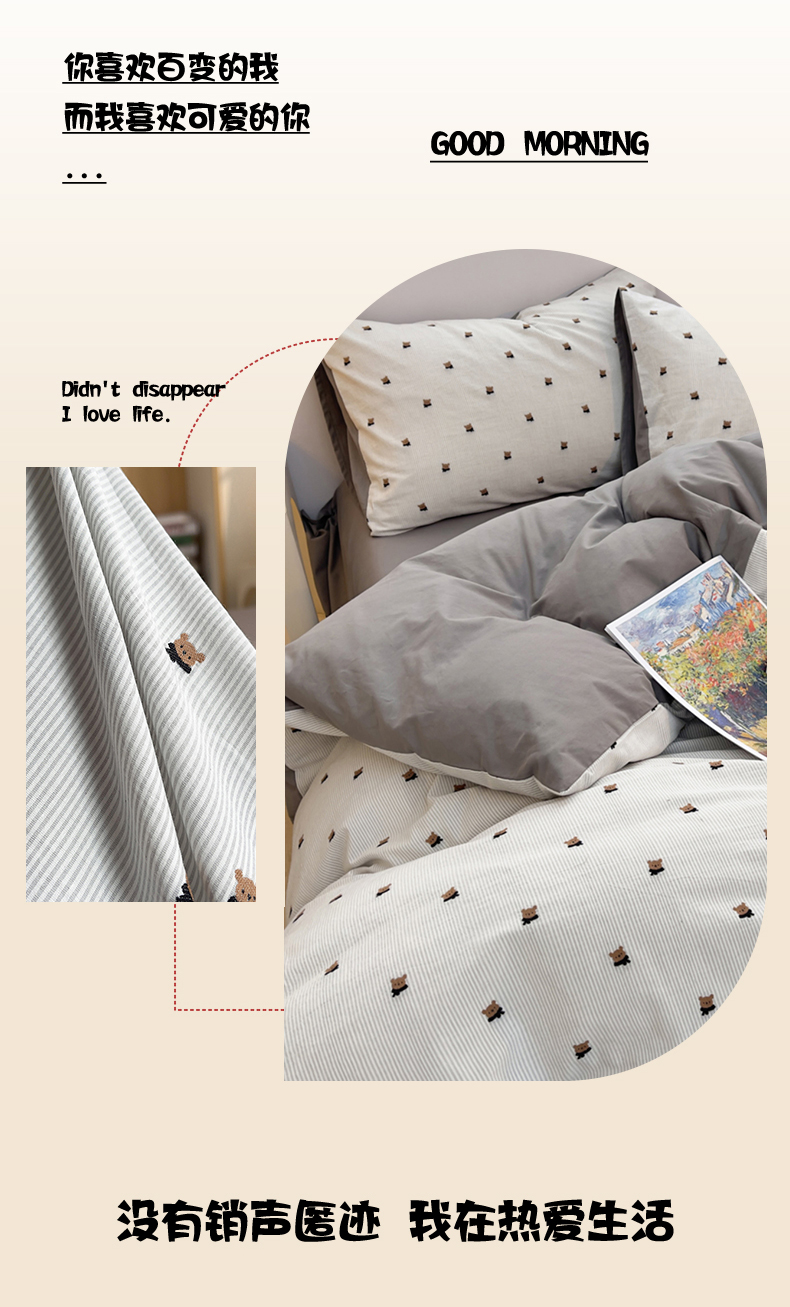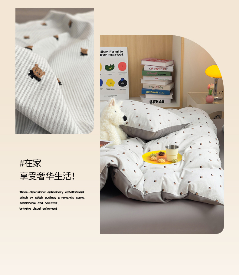 当前位置: 91家纺网 > 商品网购 > 床品套件 > 四件套 > 全棉普通四件套 > (总)炫拼家纺 2026新款A类全棉60支色织提花剪花B版40支水洗棉四件套-米熊系列
