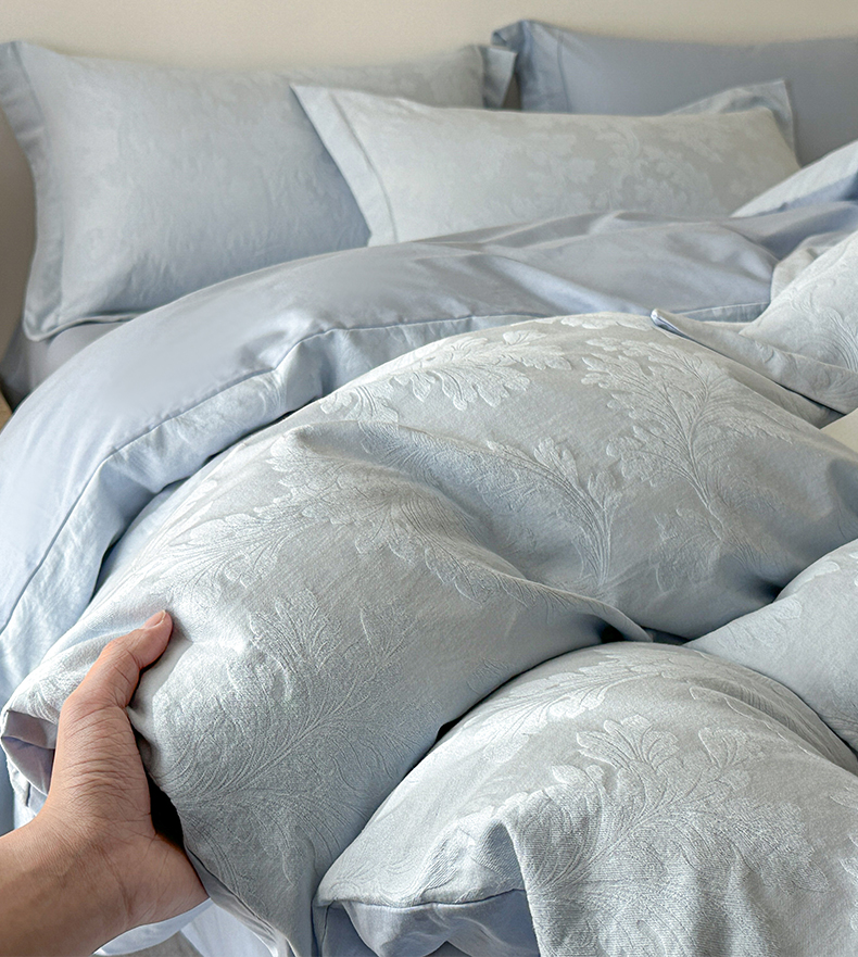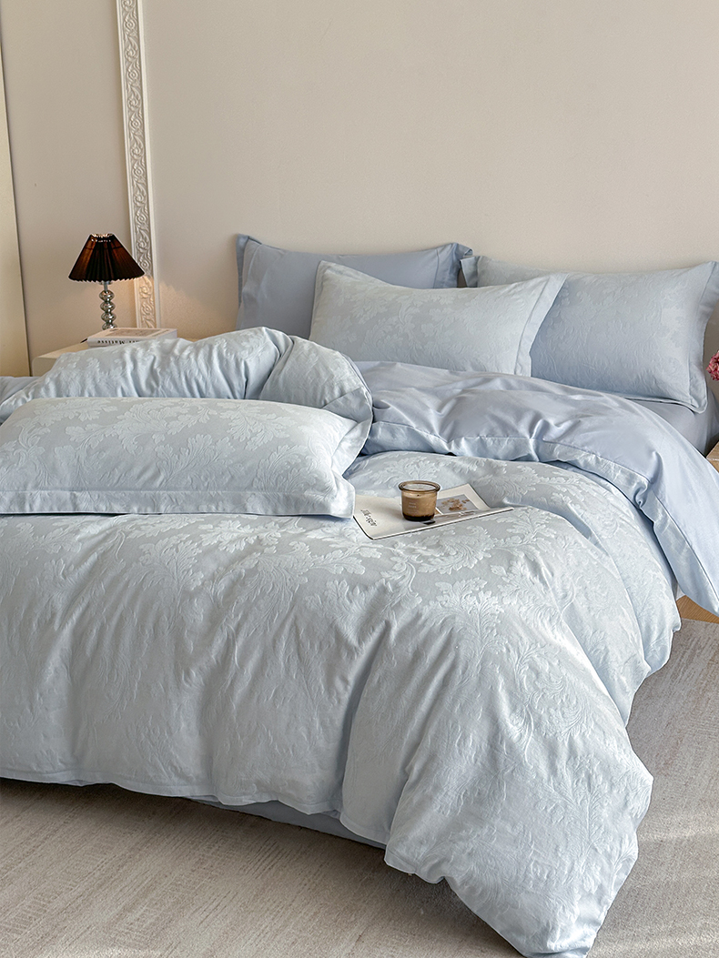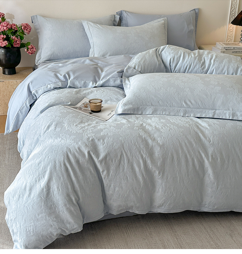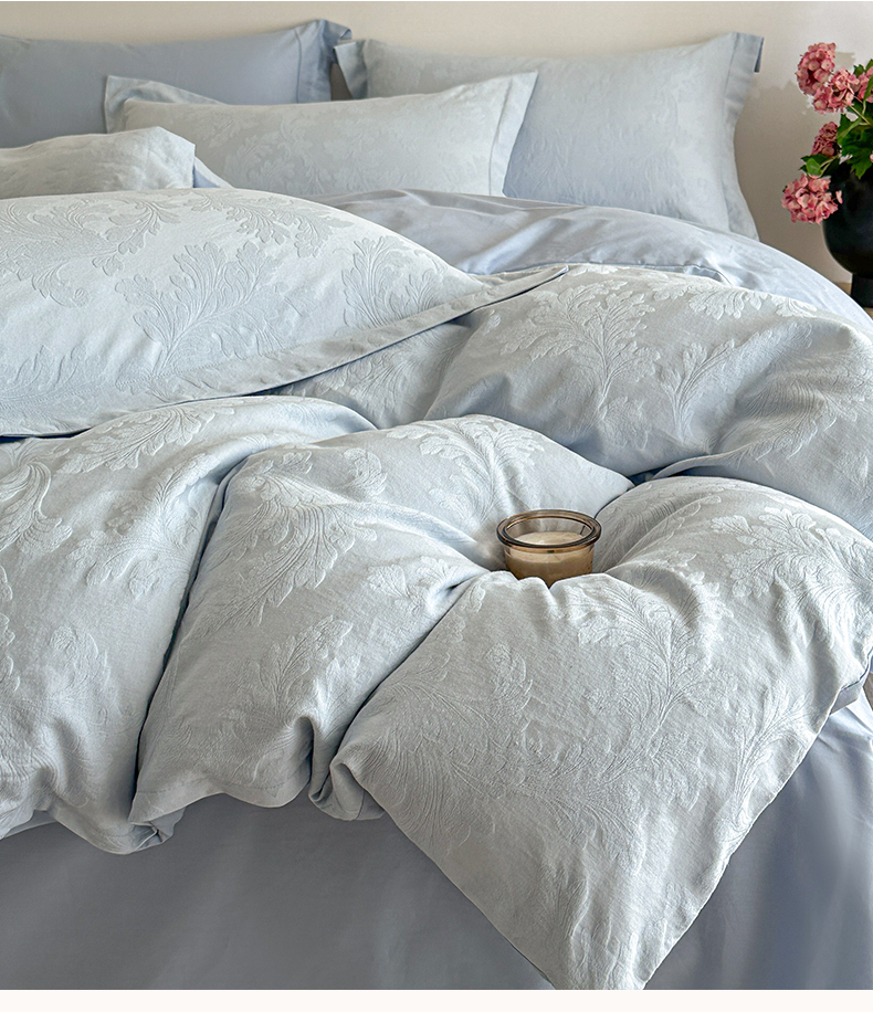 商品名称:格里芬家纺 2026新款全棉水洗立体浮雕提花纯棉四件套 柔风香草-云水蓝
