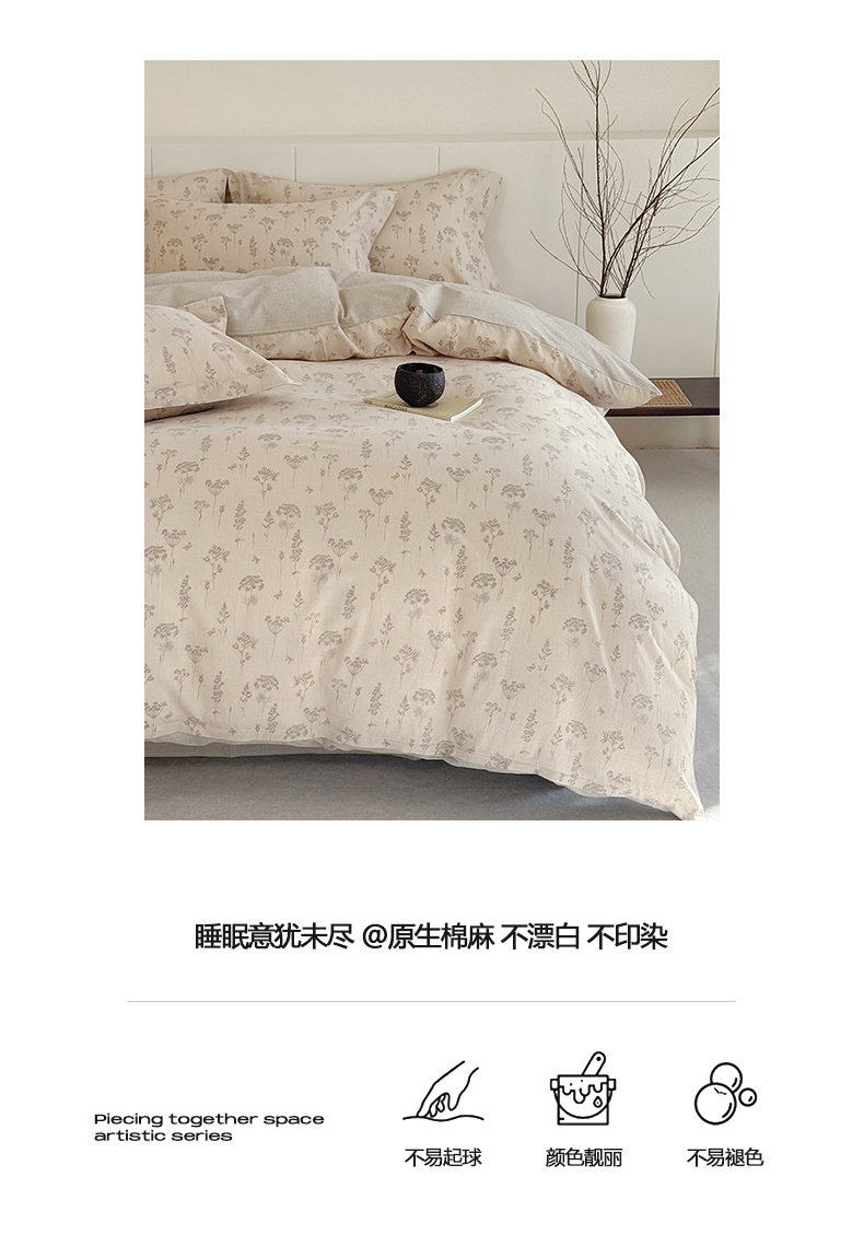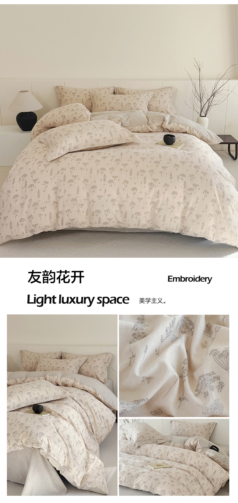 当前位置: 91家纺网 > 商品网购 > 床品套件 > 四件套 > 全棉普通四件套 > 锦罗绣 2026新款纯棉棉麻四件套 友韵花开