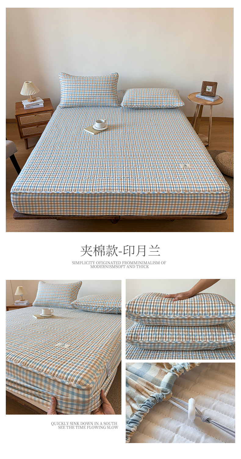 (总)居眠 2026新款全棉色织水洗棉格子夹棉棉花床笠,夹棉款-摩登蓝卡条,夹棉款-摩登绿卡条